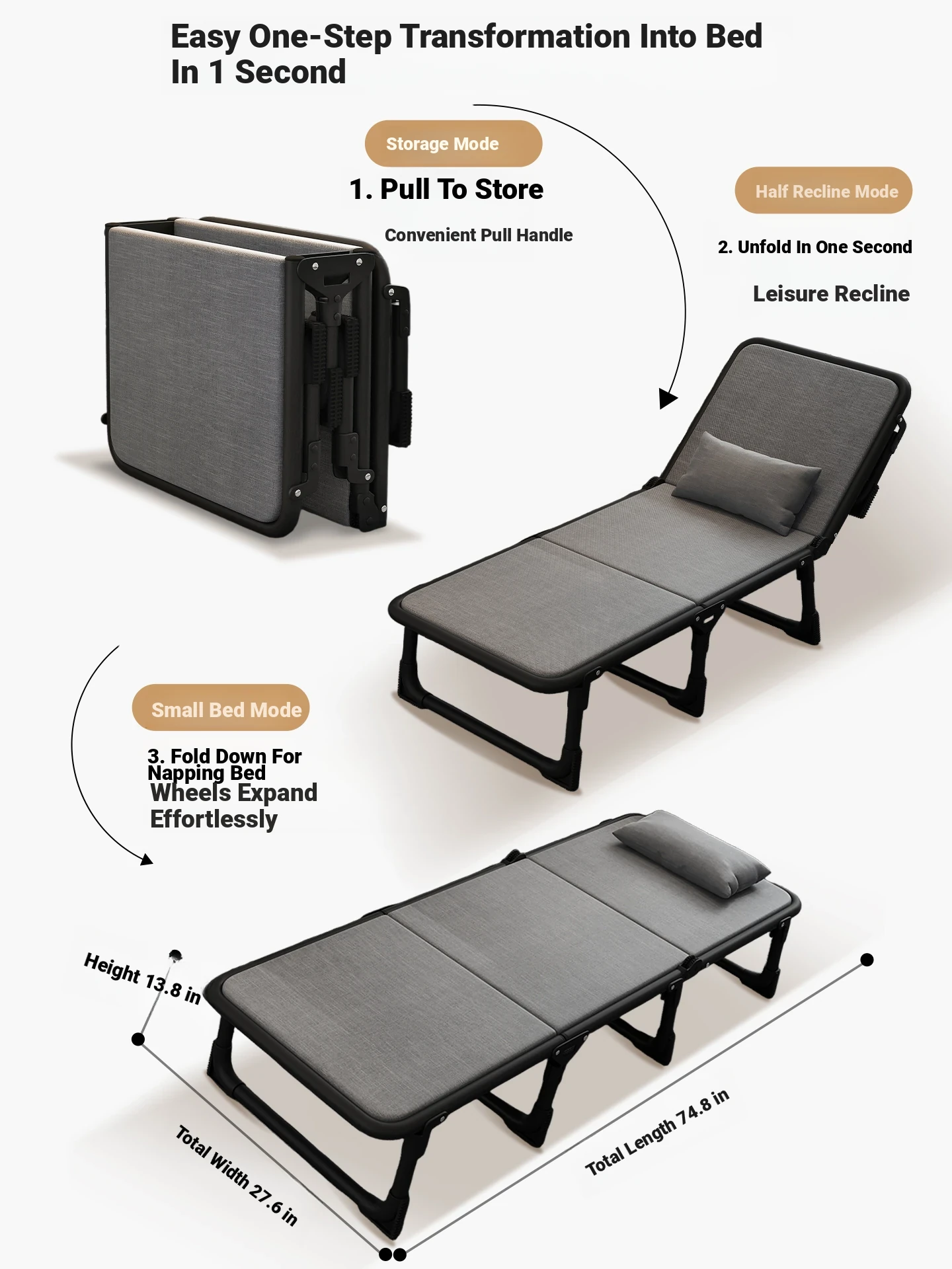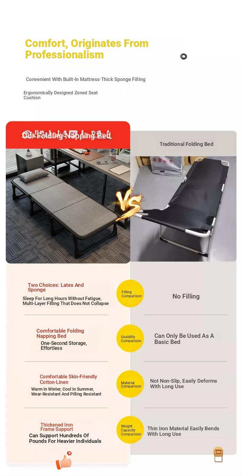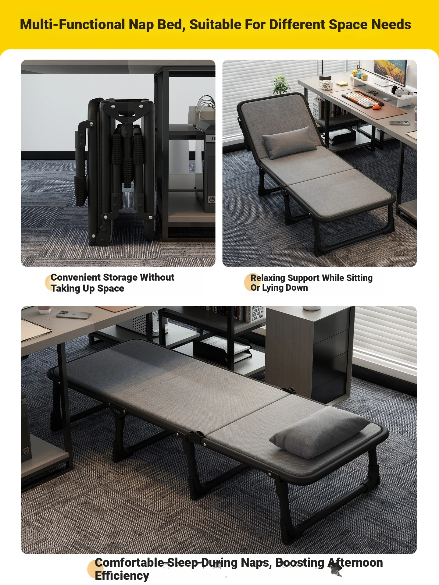 Compact Office Folding Bed for Single Use - Perfect Napping Solution for Workstations, Portable Military-Style Bed for Adults, Ideal for Quick Rest and Relaxation.