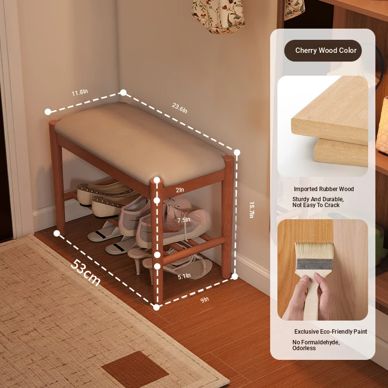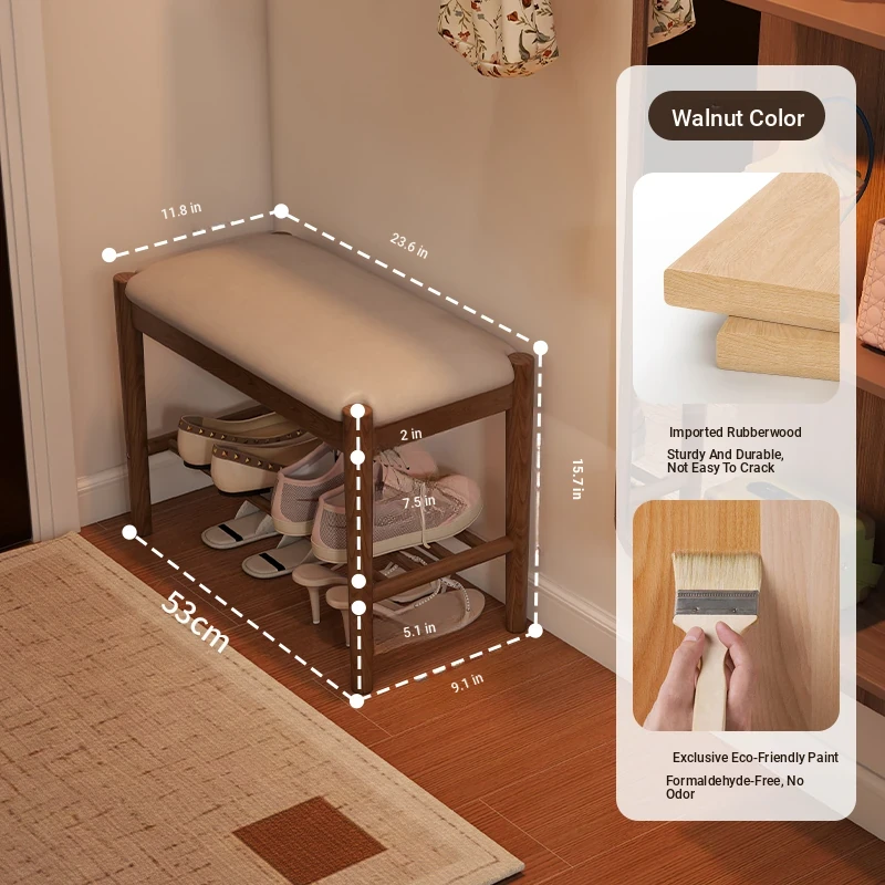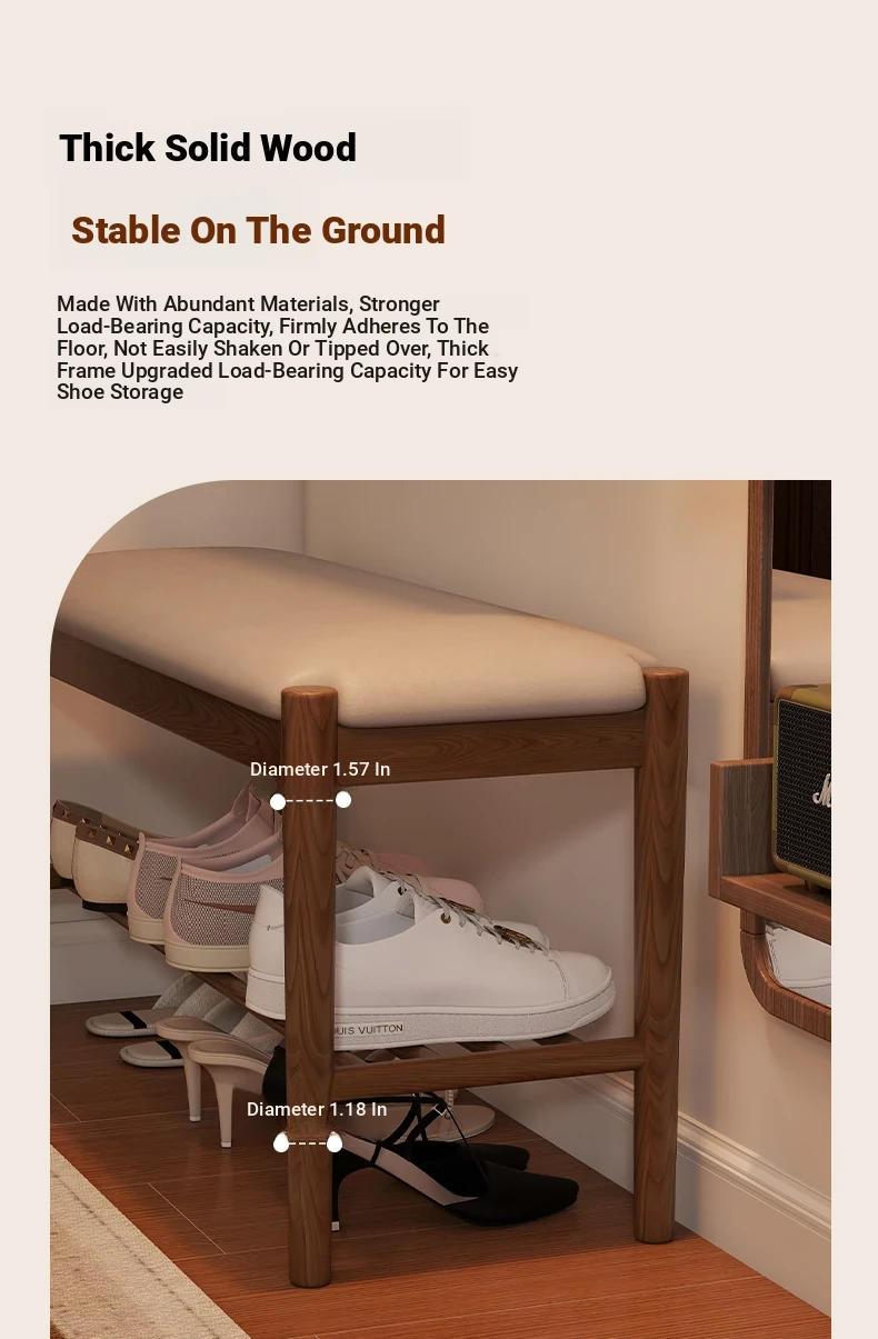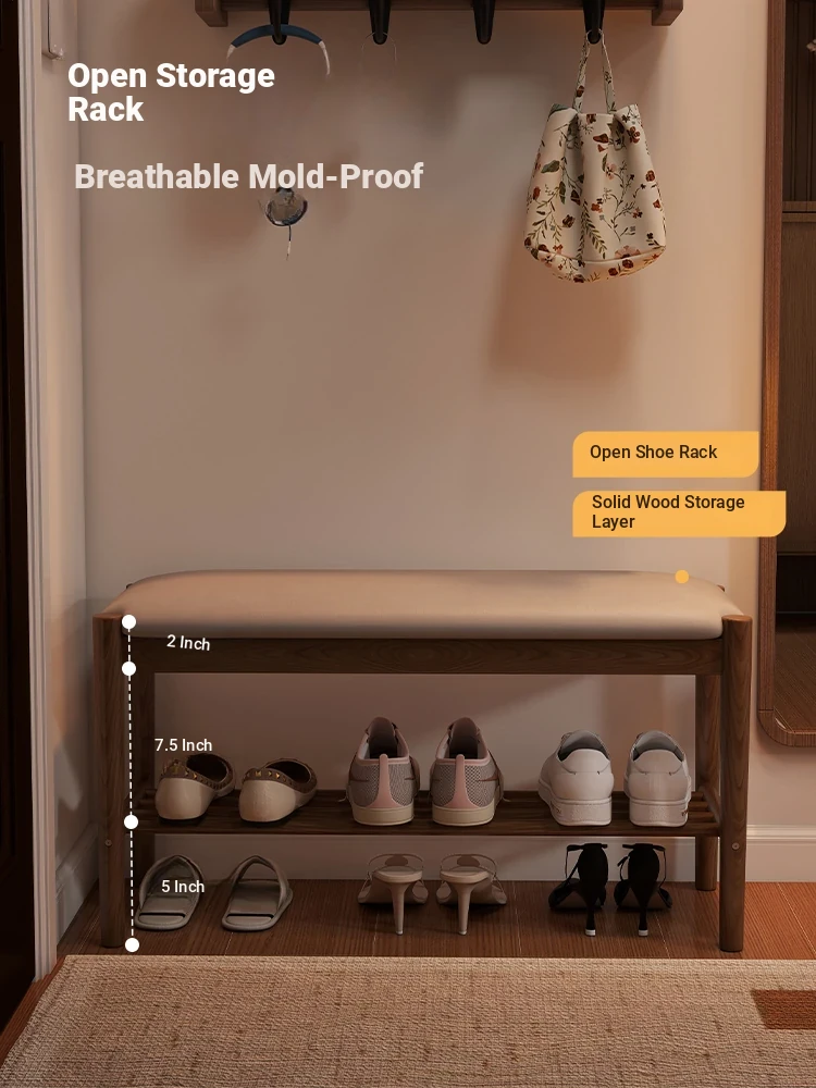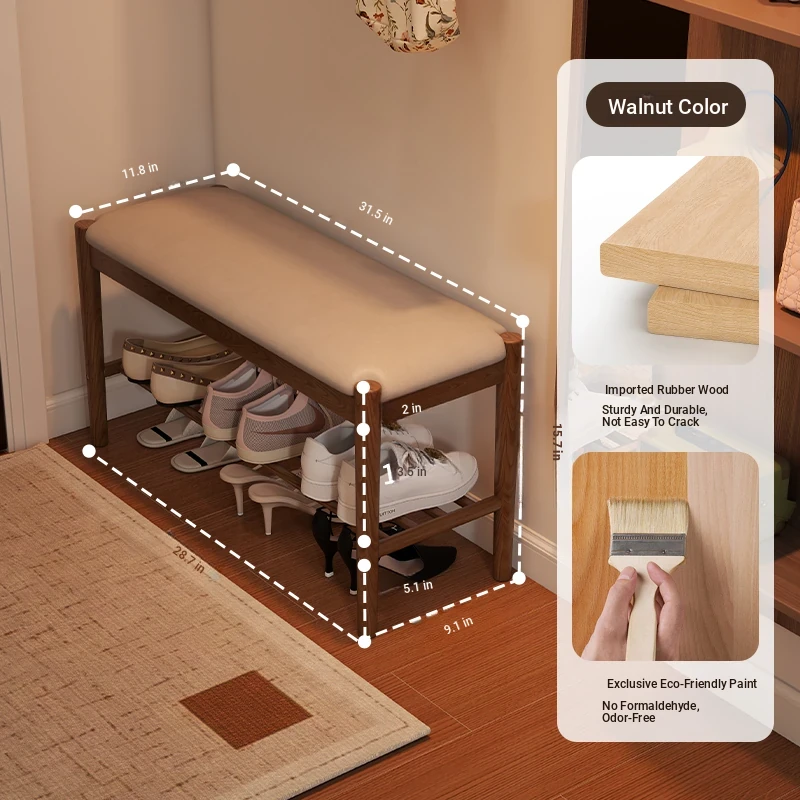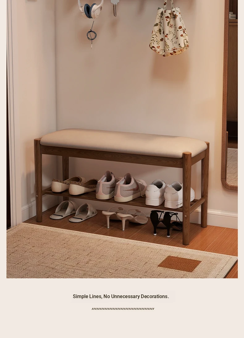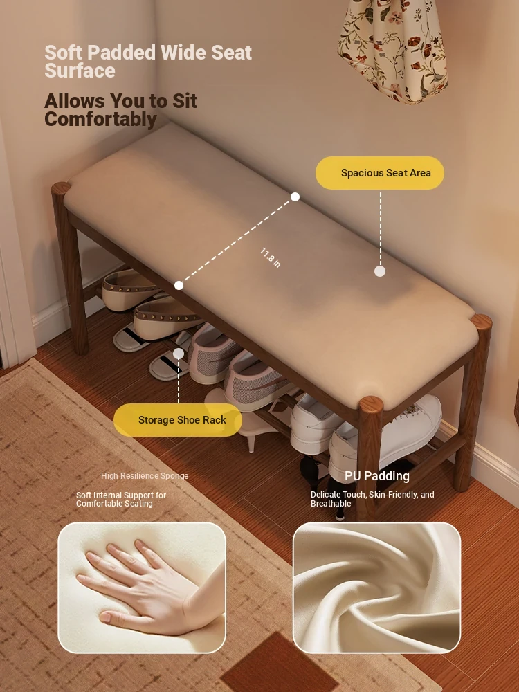 Solid Wood Shoe Bench - Stylish Entryway Seating and Storage Solution with Soft Cushion, Ideal for Home Use, Space-Saving Design, Perfect for Changing Shoes at the Door.