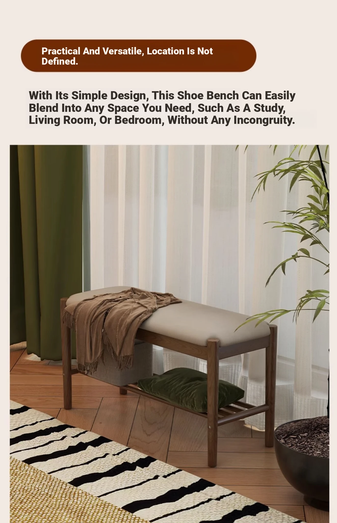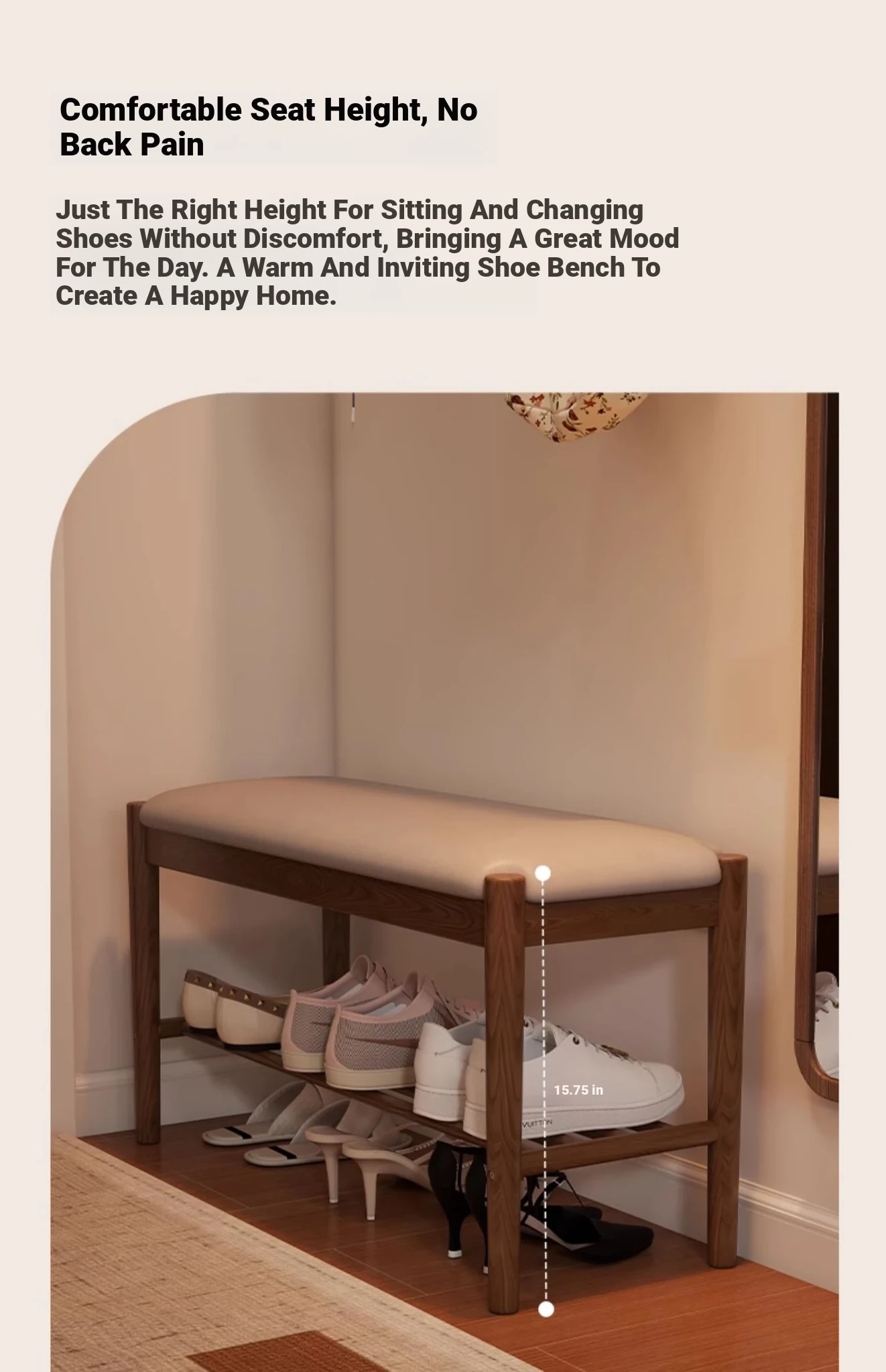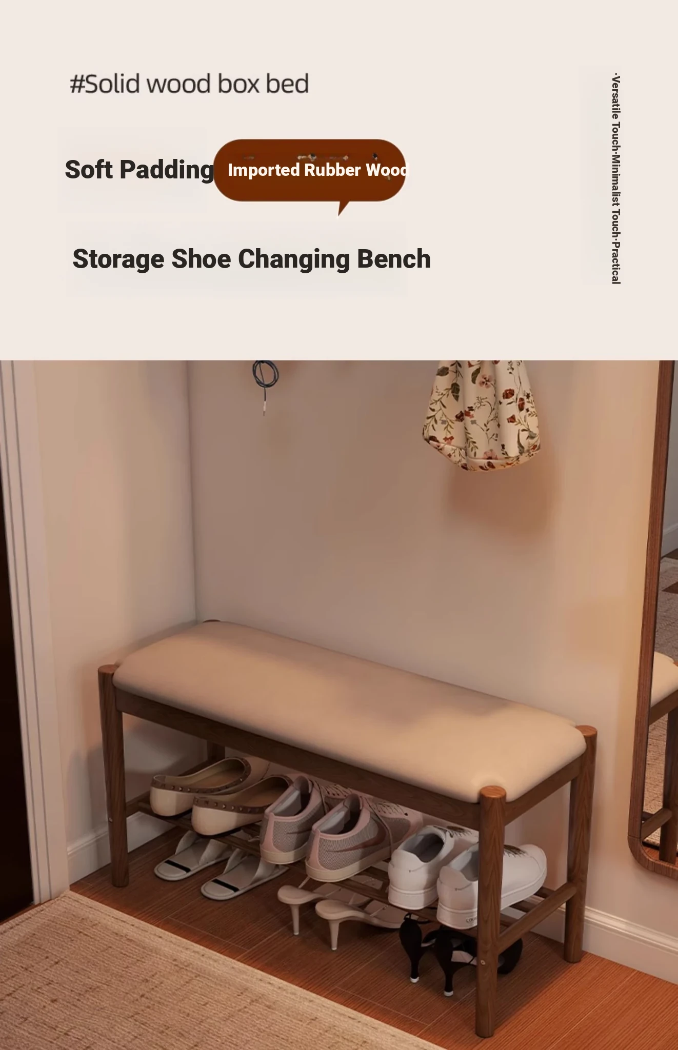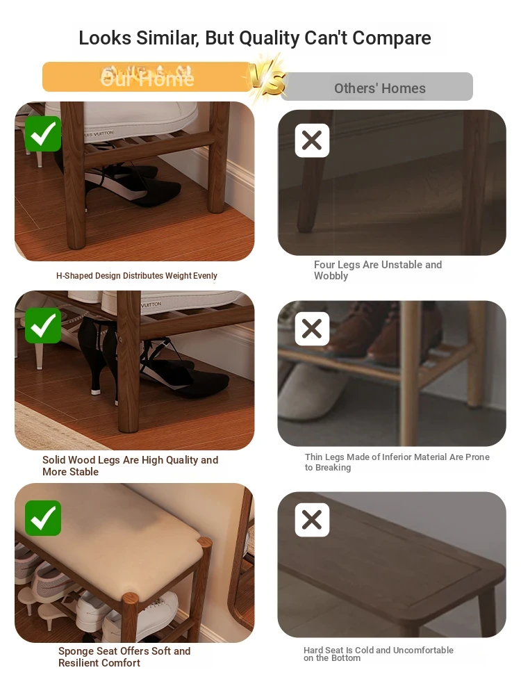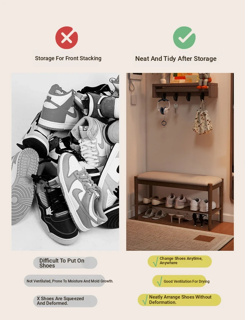 Solid Wood Shoe Bench - Stylish Entryway Seating and Storage Solution with Soft Cushion, Ideal for Home Use, Space-Saving Design, Perfect for Changing Shoes at the Door.