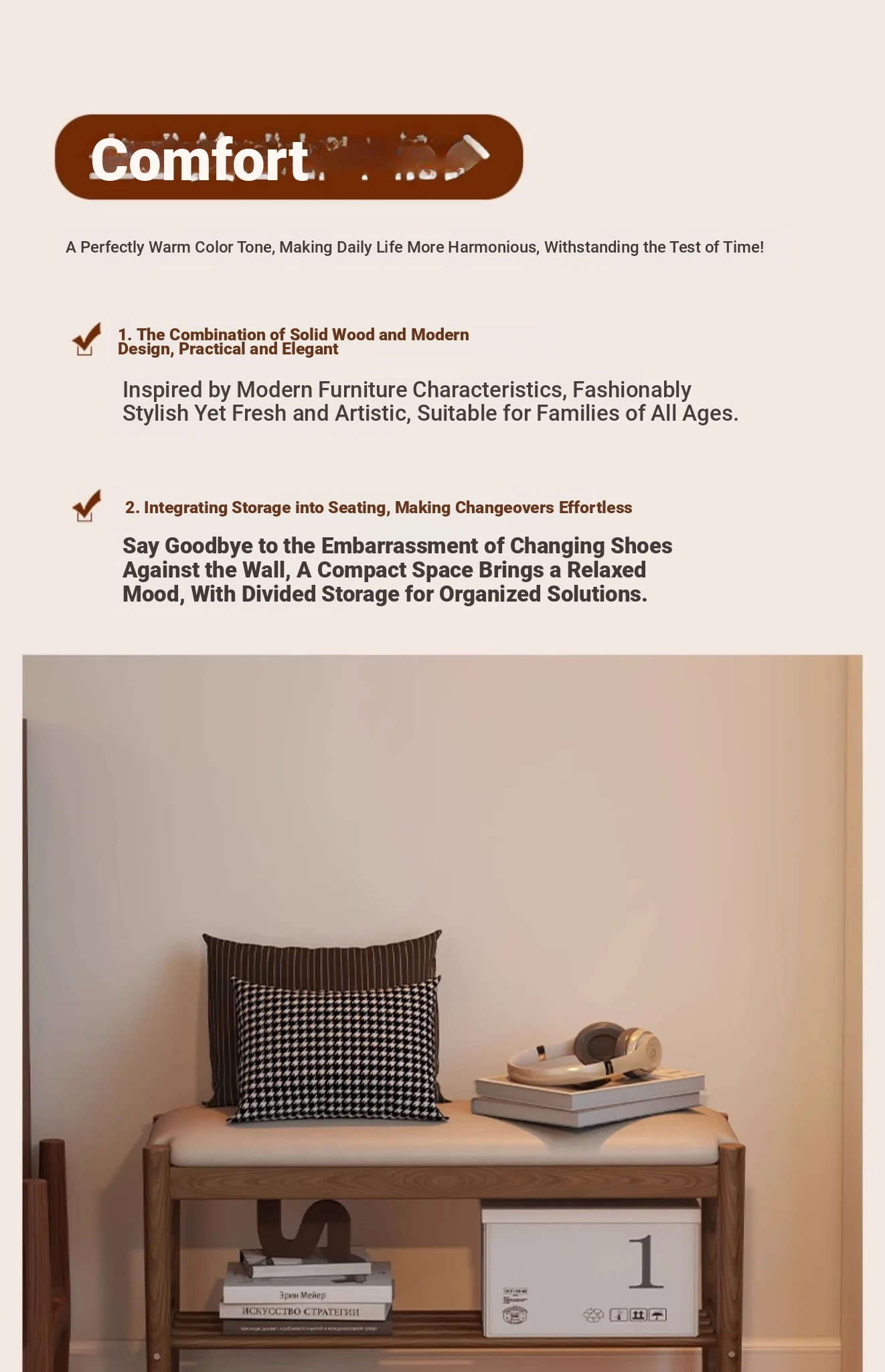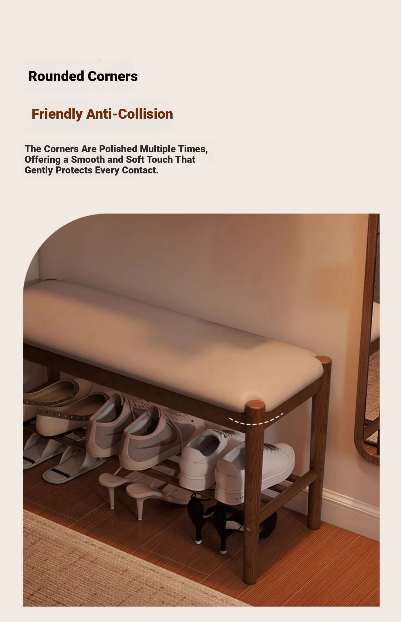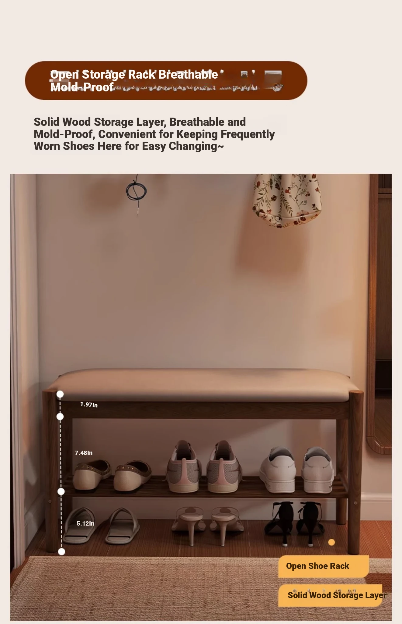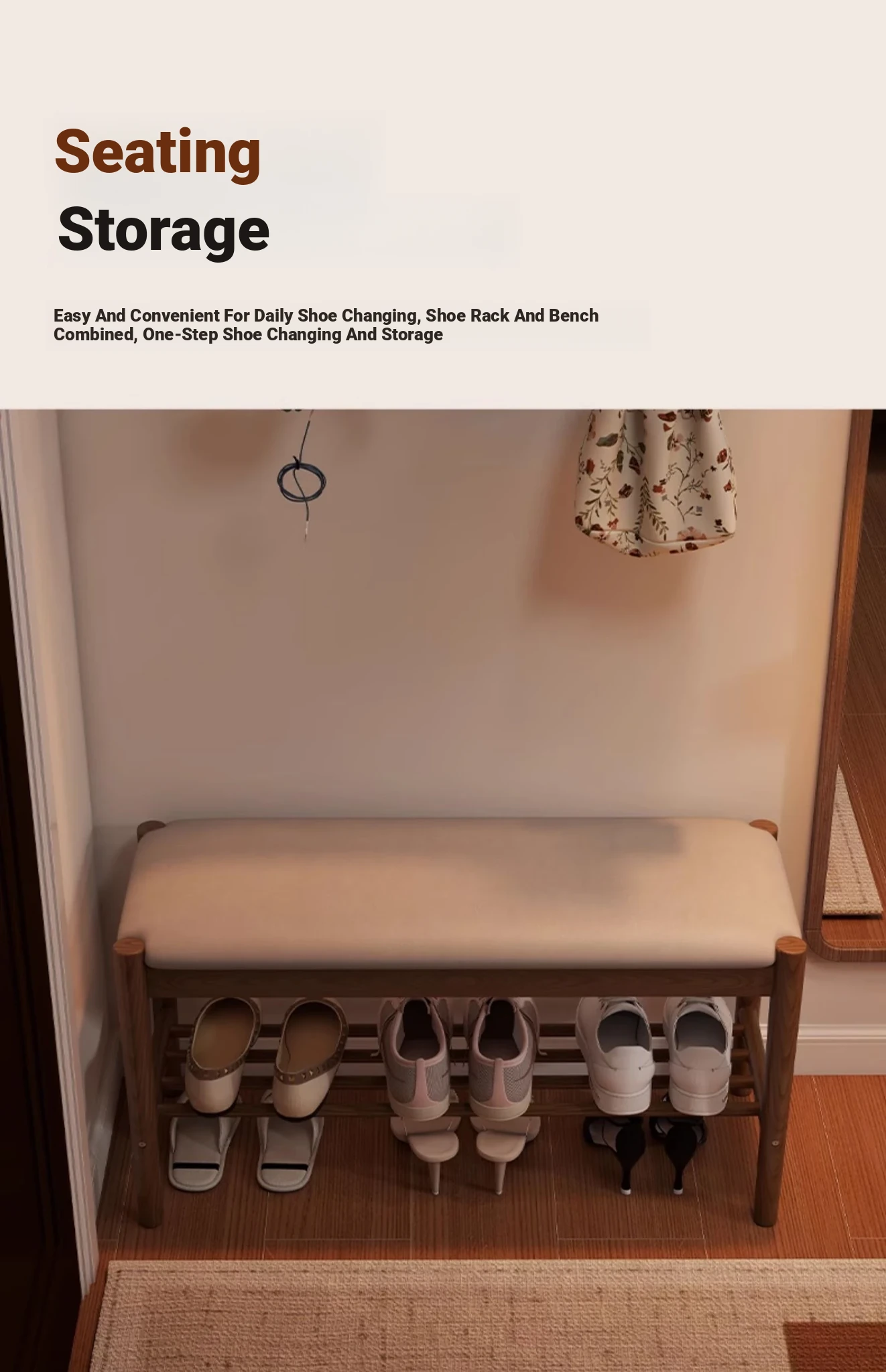 Solid Wood Shoe Bench - Stylish Entryway Seating and Storage Solution with Soft Cushion, Ideal for Home Use, Space-Saving Design, Perfect for Changing Shoes at the Door.