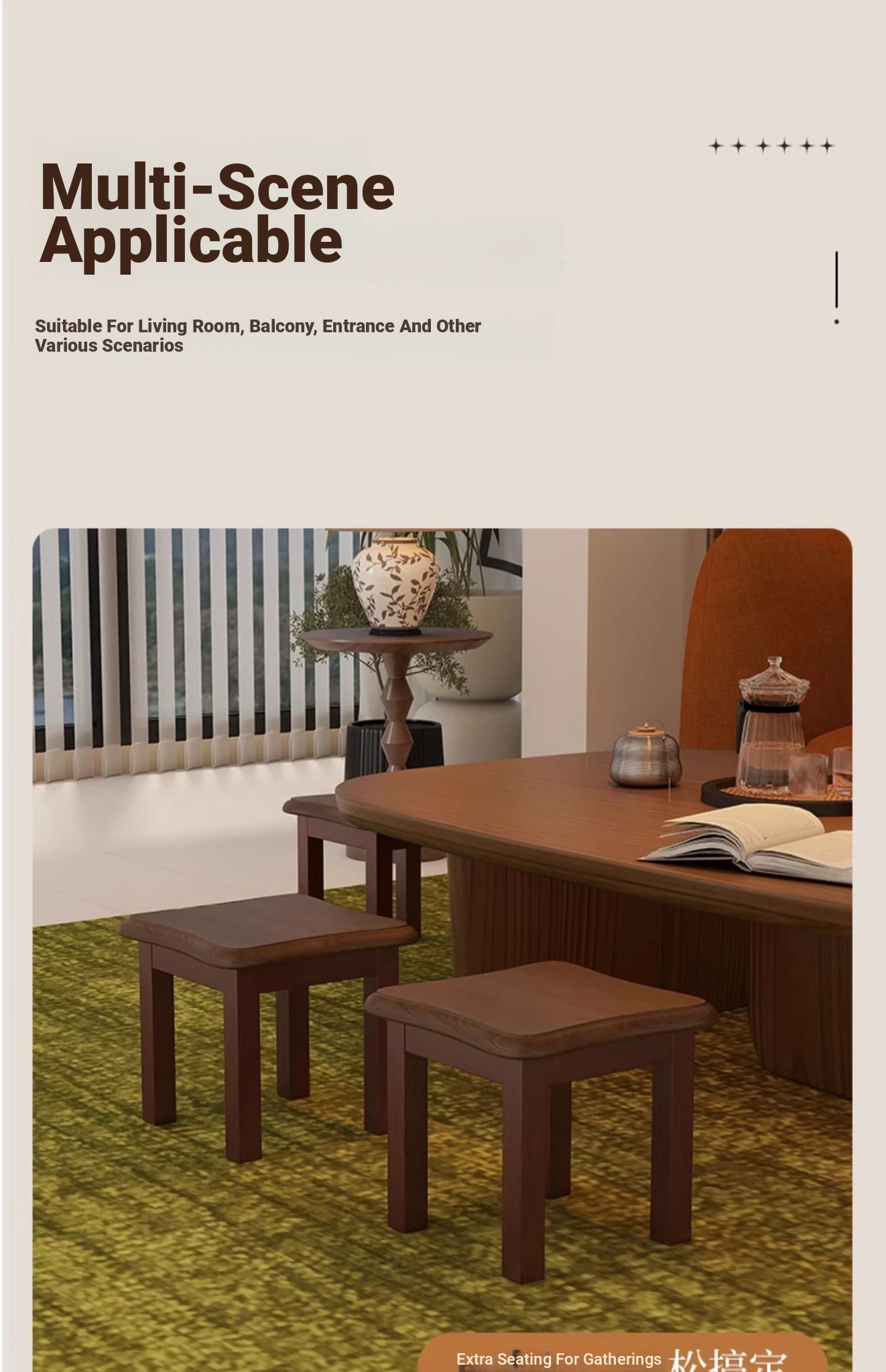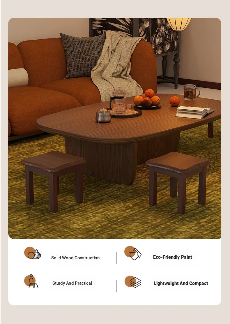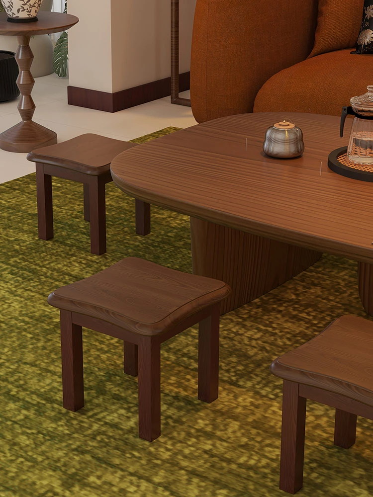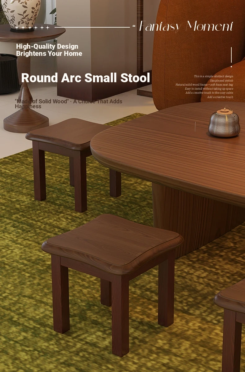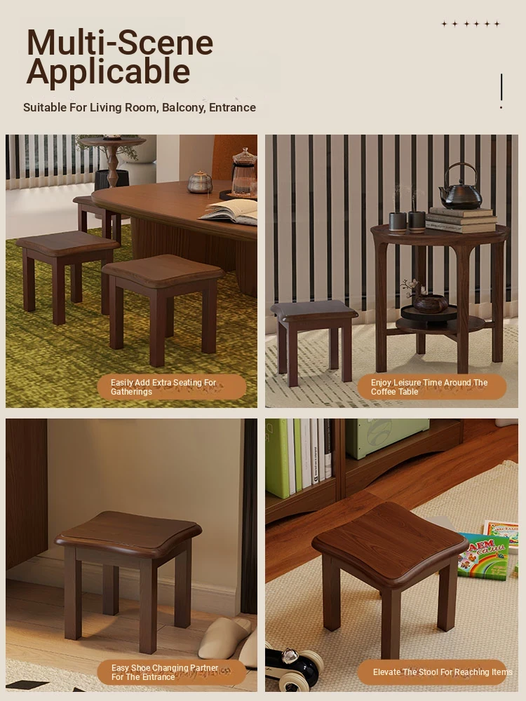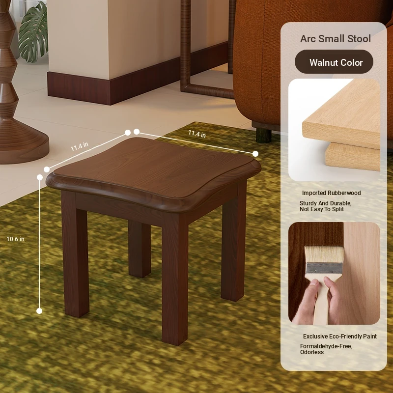 Solid Wood Small Stool - Stylish and Sturdy Low Bench for Living Room, Non-Slip Shoe Changing Stool, Durable Rubber Wood Tea Bench, Perfect for Home Use