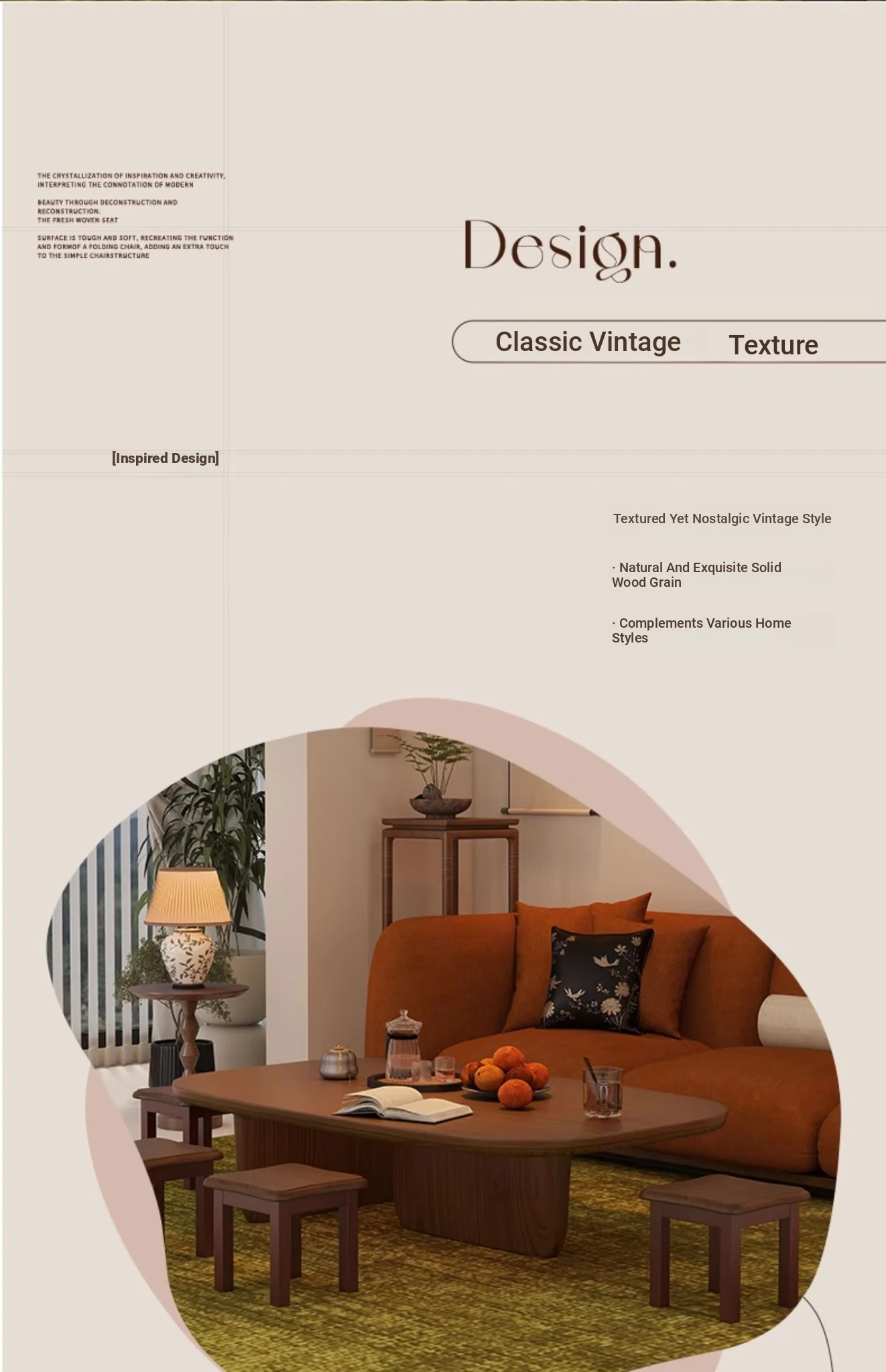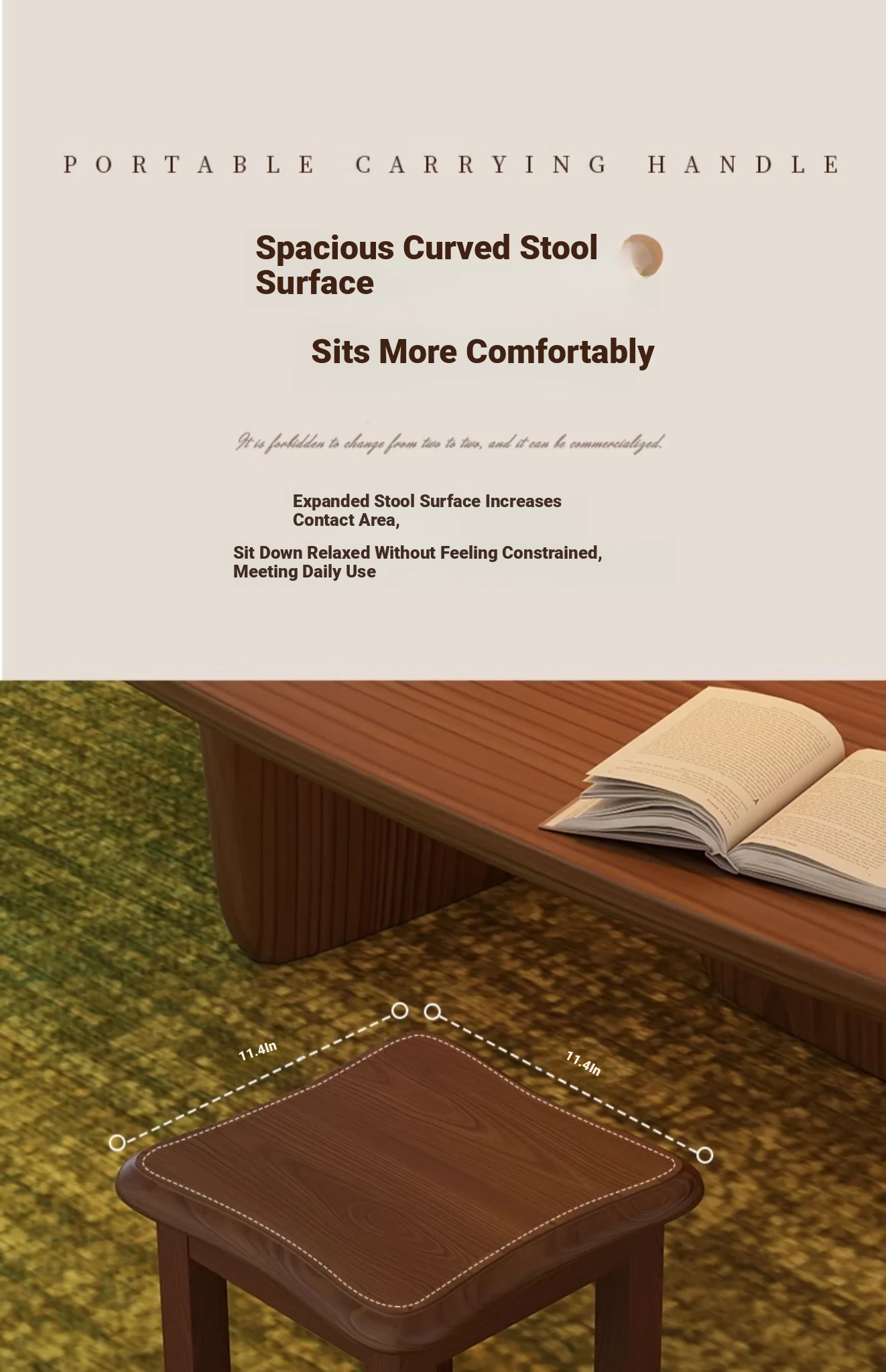 Circular arc square stool [cherry wood color] Import rubber wood