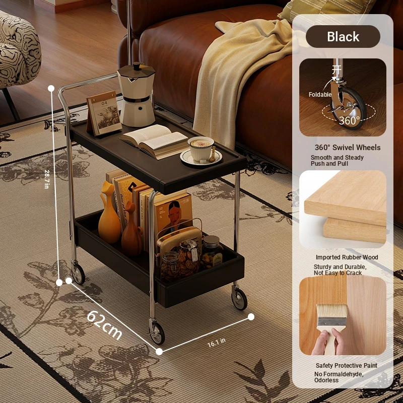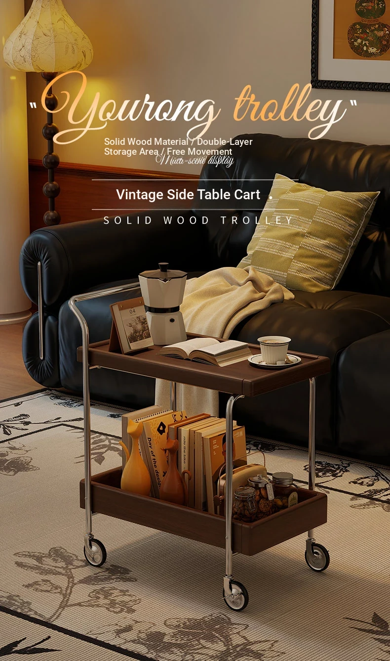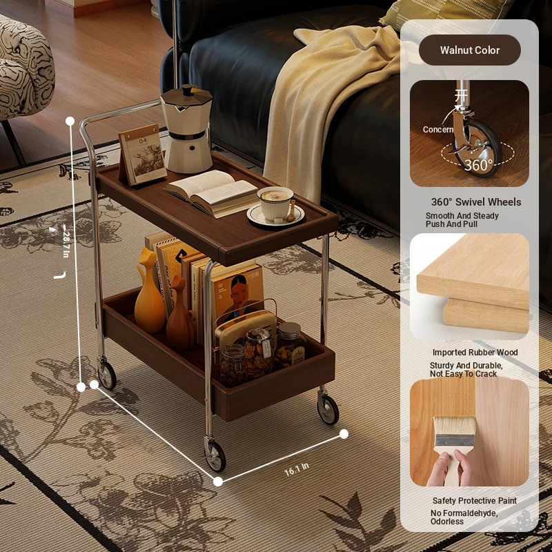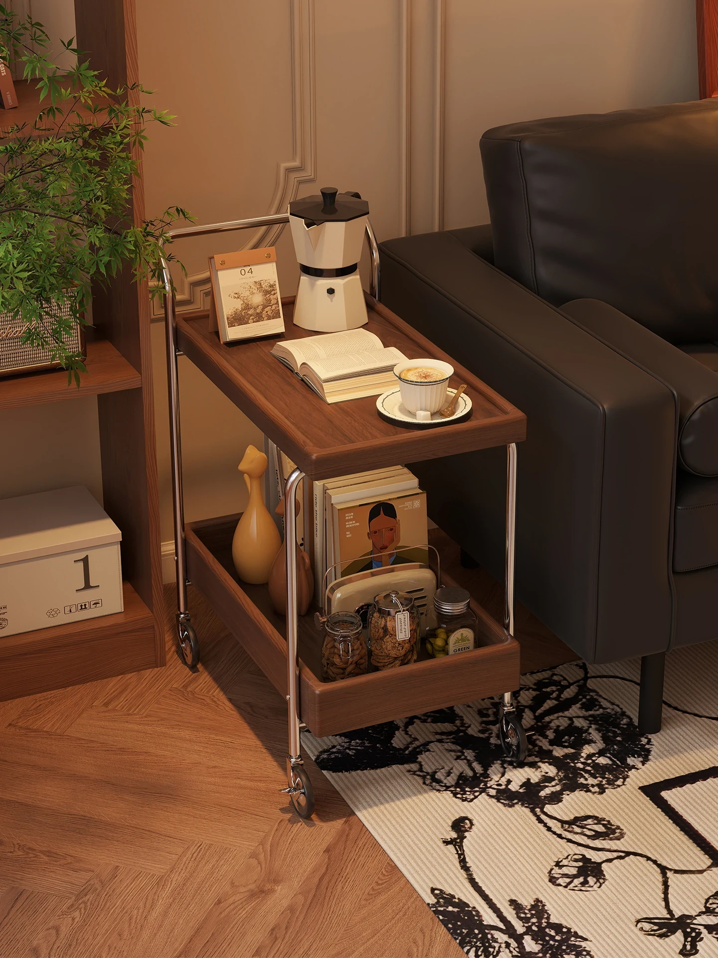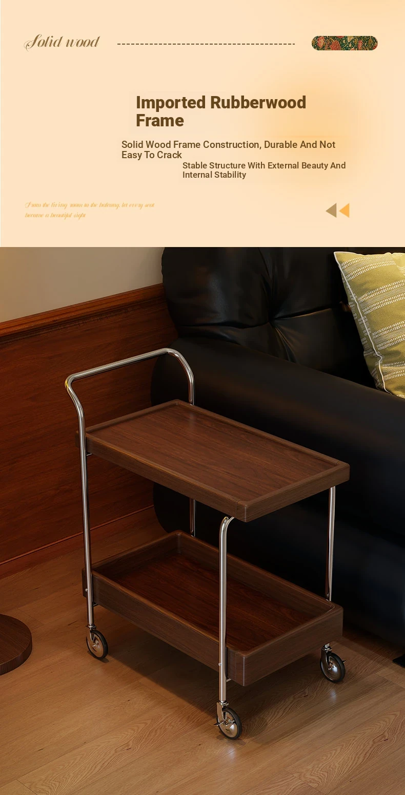Stylish Dual-Layer Solid Wood Side Table - Versatile Movable Tea Table for Living Room, Sofa, and Minimalist Storage - Perfect Home Dining Cart