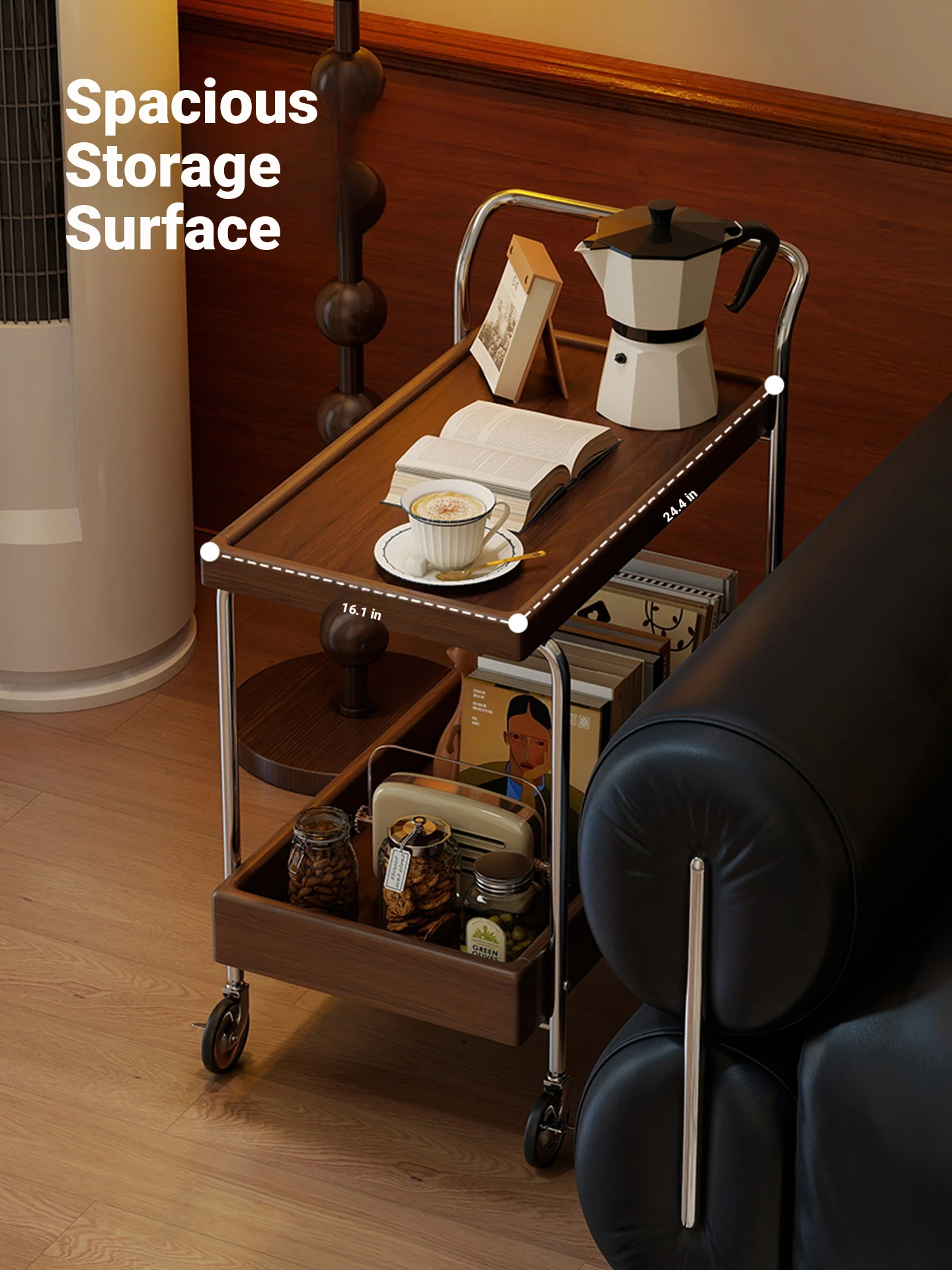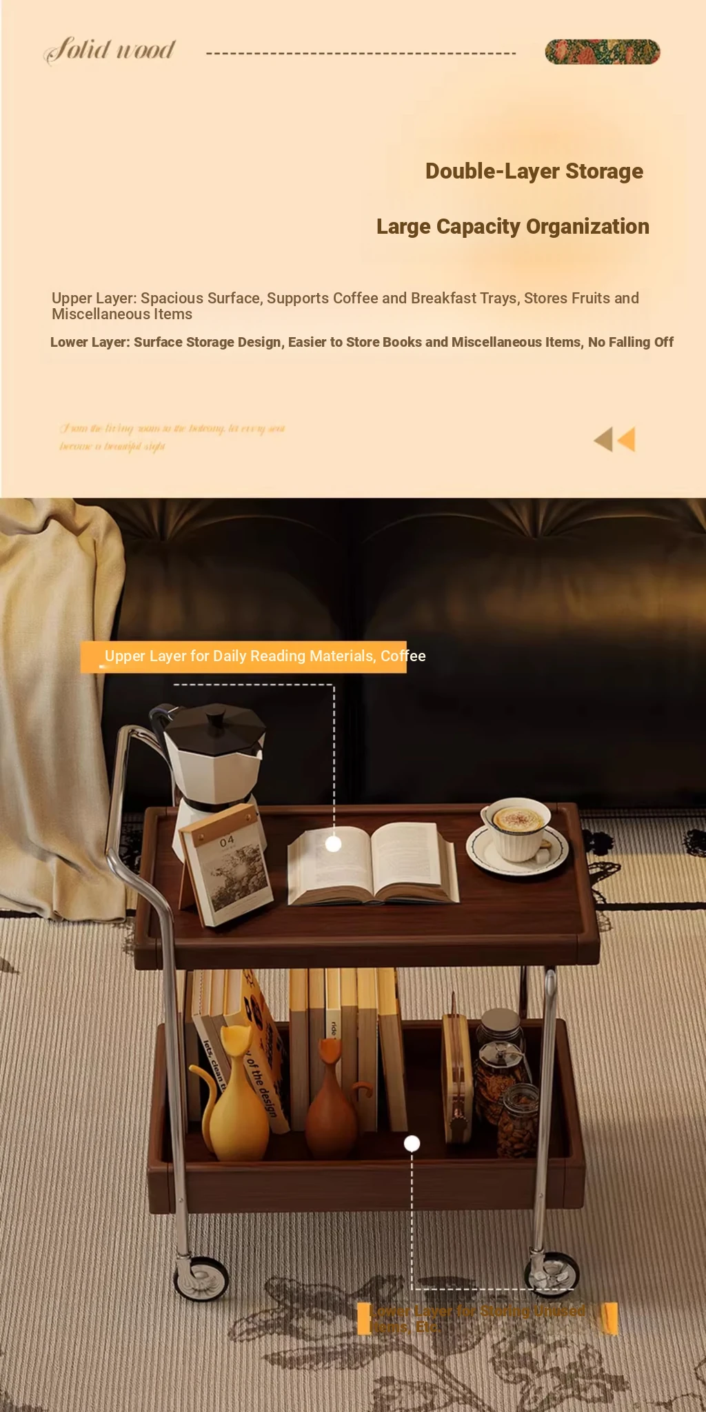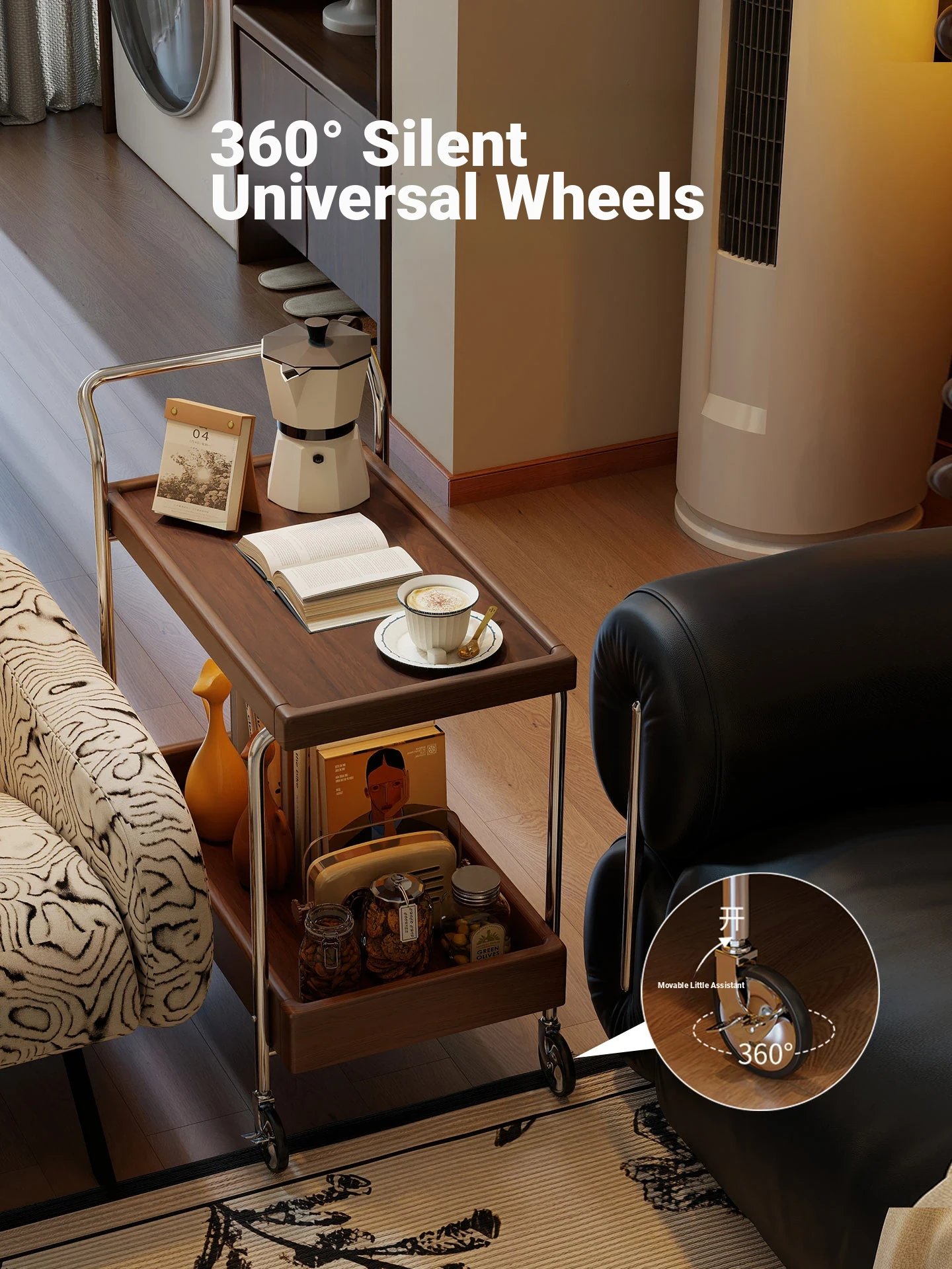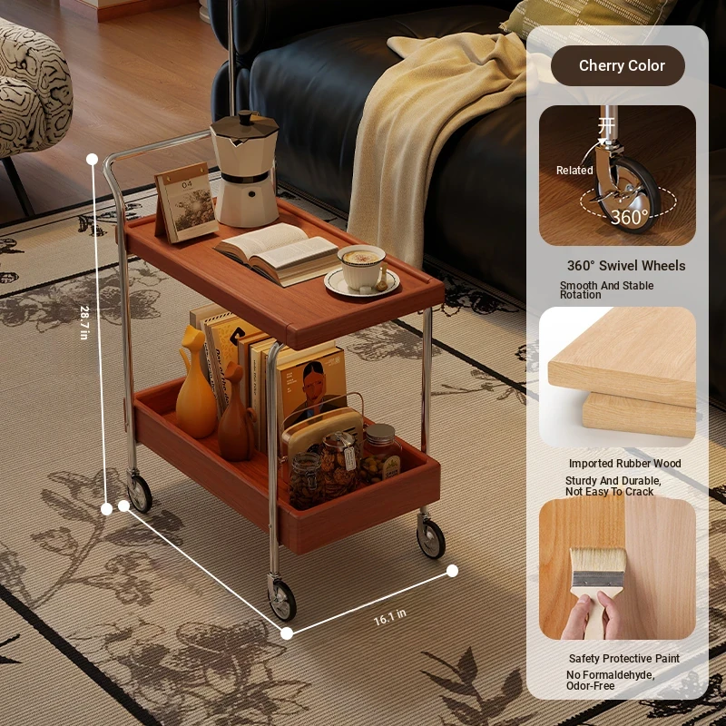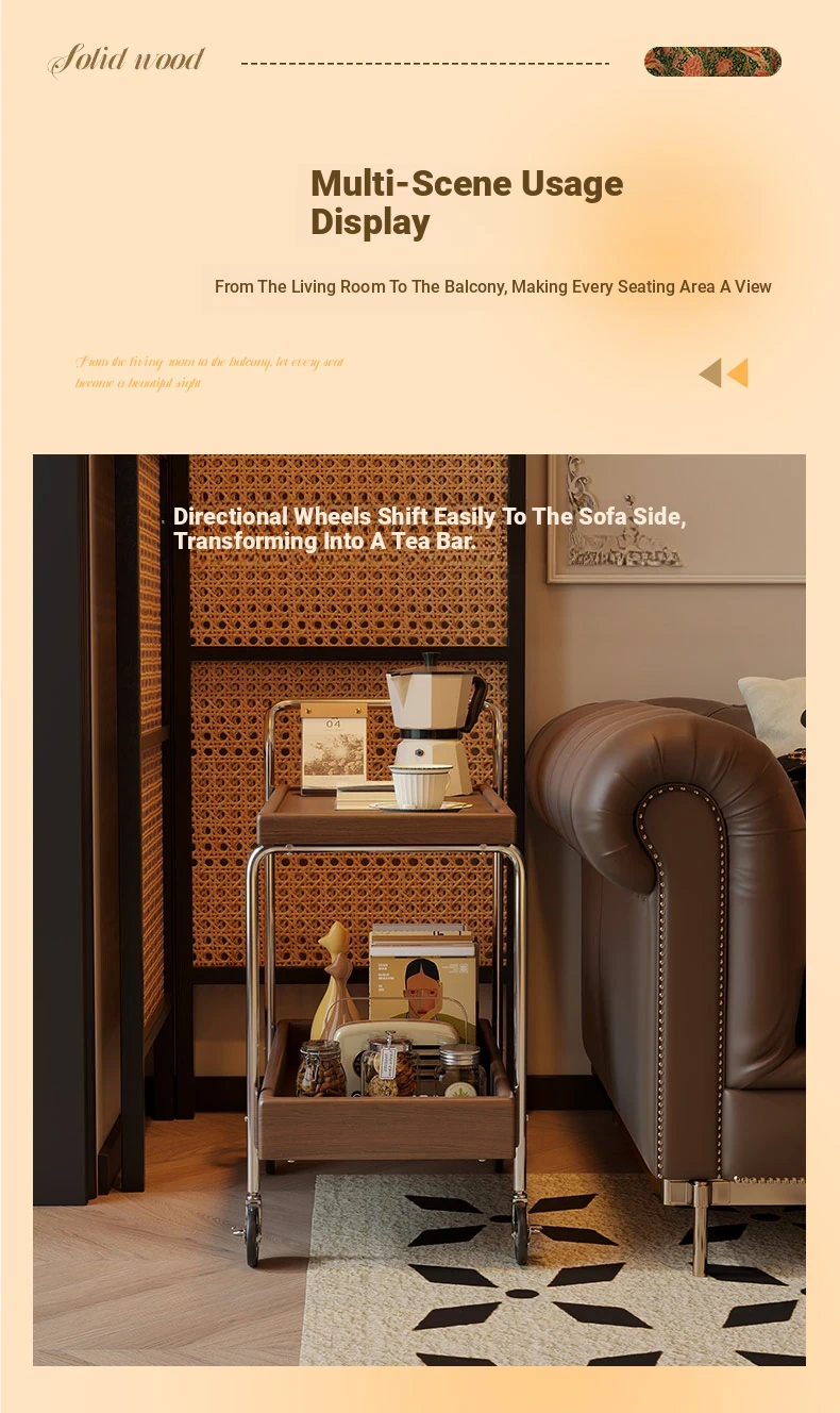 Stylish Dual-Layer Solid Wood Side Table - Versatile Movable Tea Table for Living Room, Sofa, and Minimalist Storage - Perfect Home Dining Cart