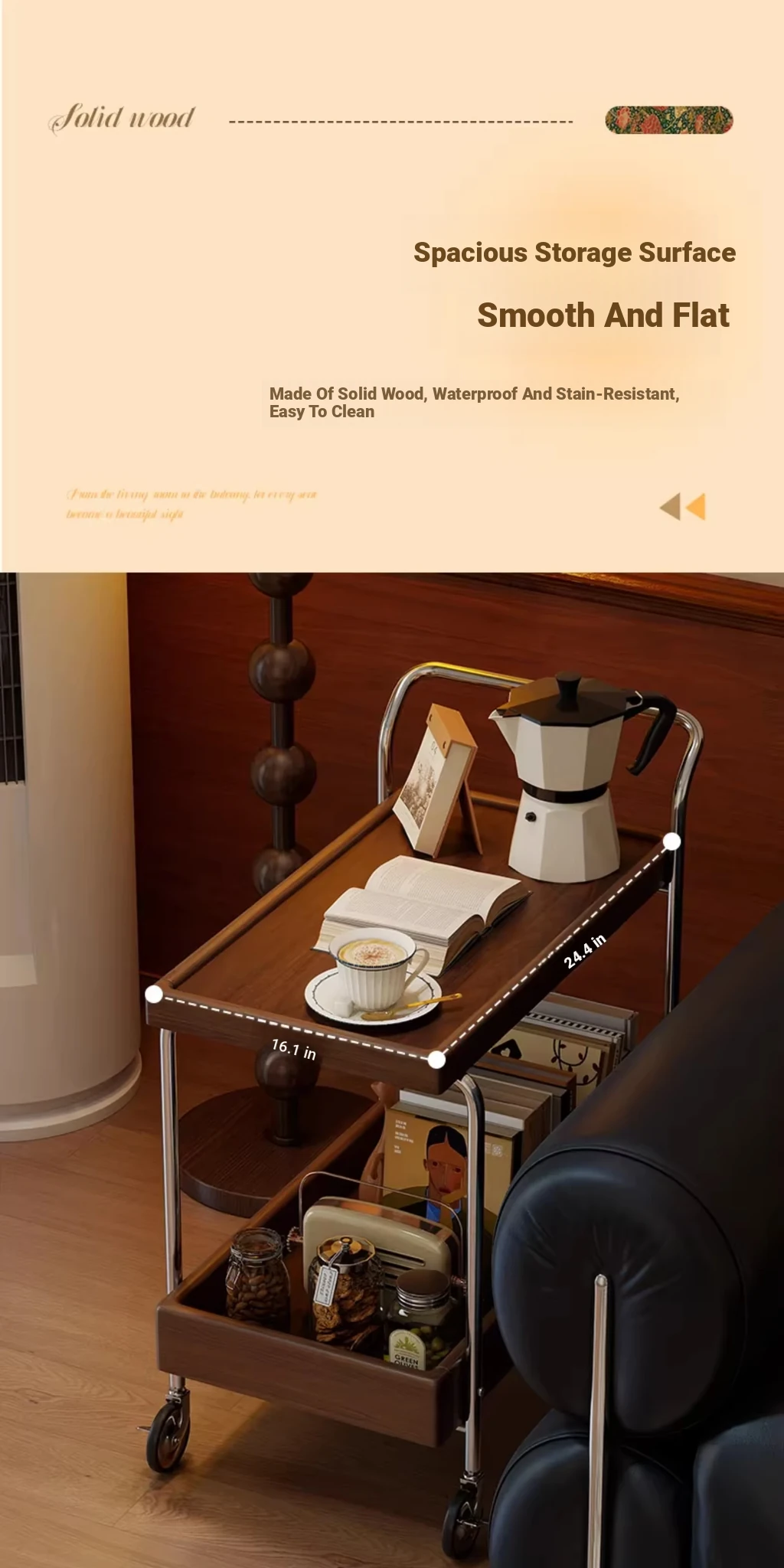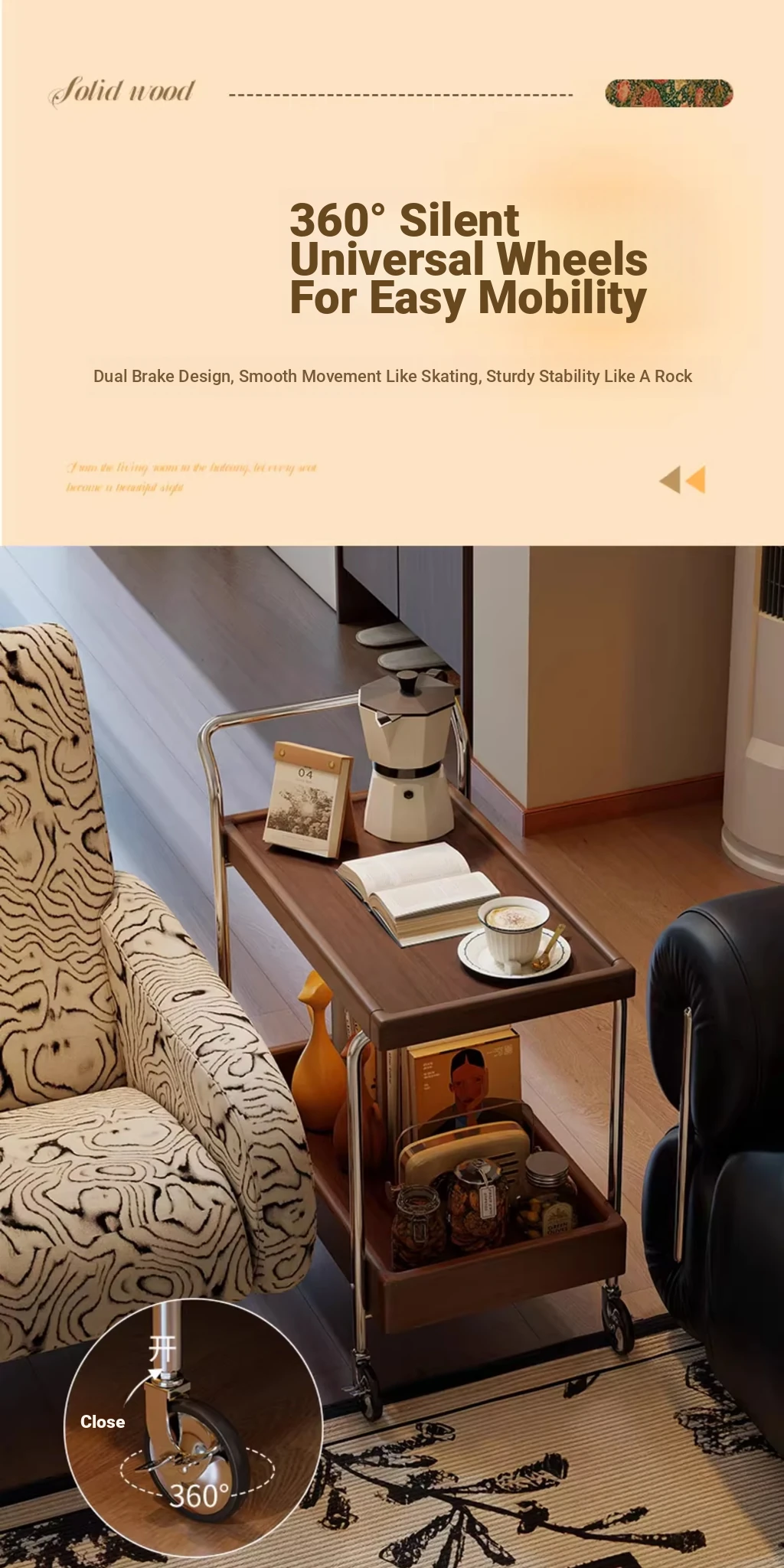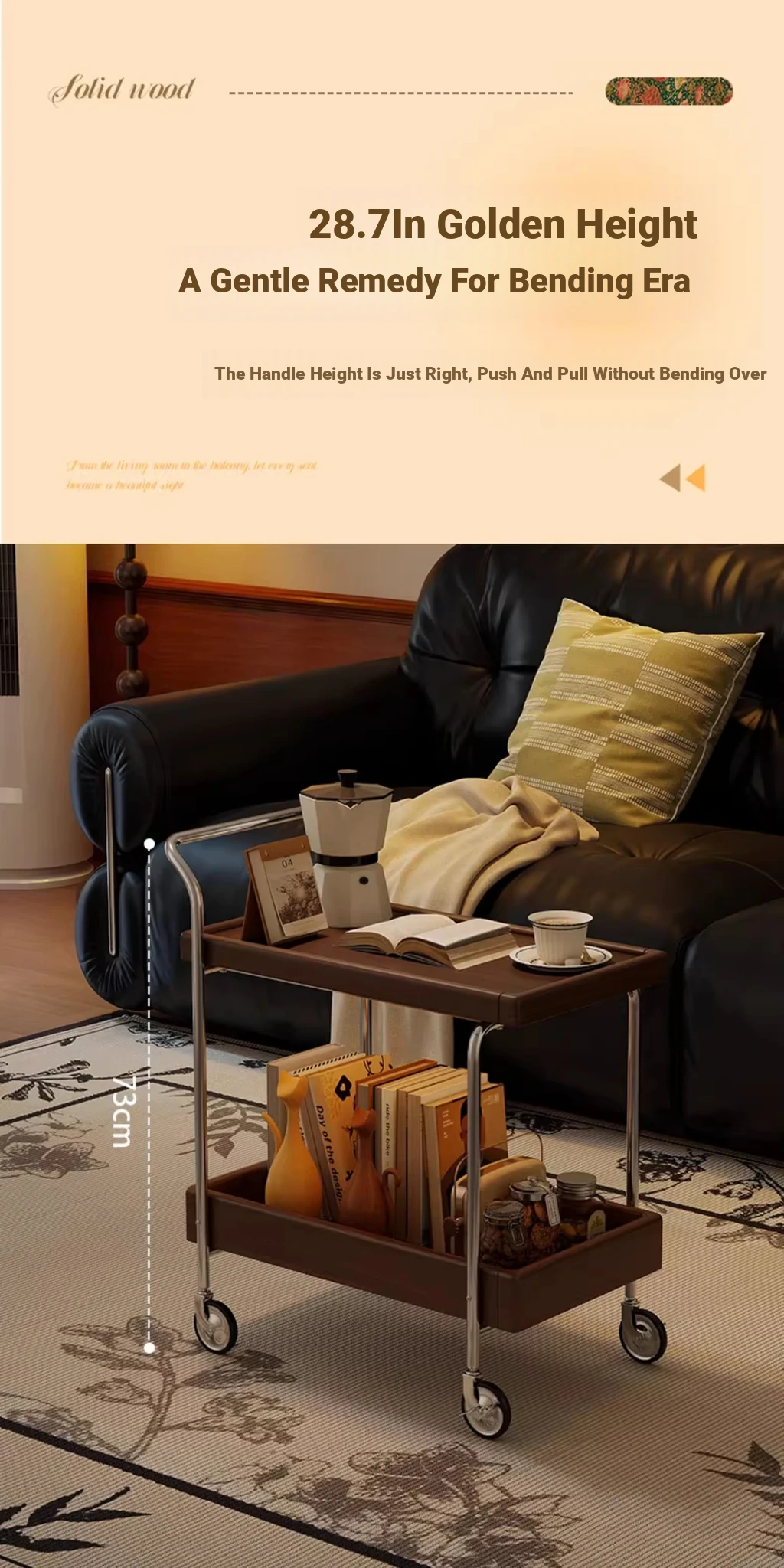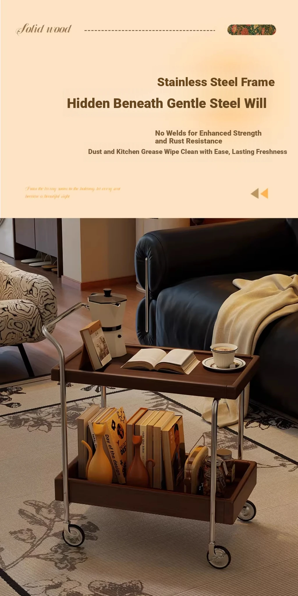 Stylish Dual-Layer Solid Wood Side Table - Versatile Movable Tea Table for Living Room, Sofa, and Minimalist Storage - Perfect Home Dining Cart