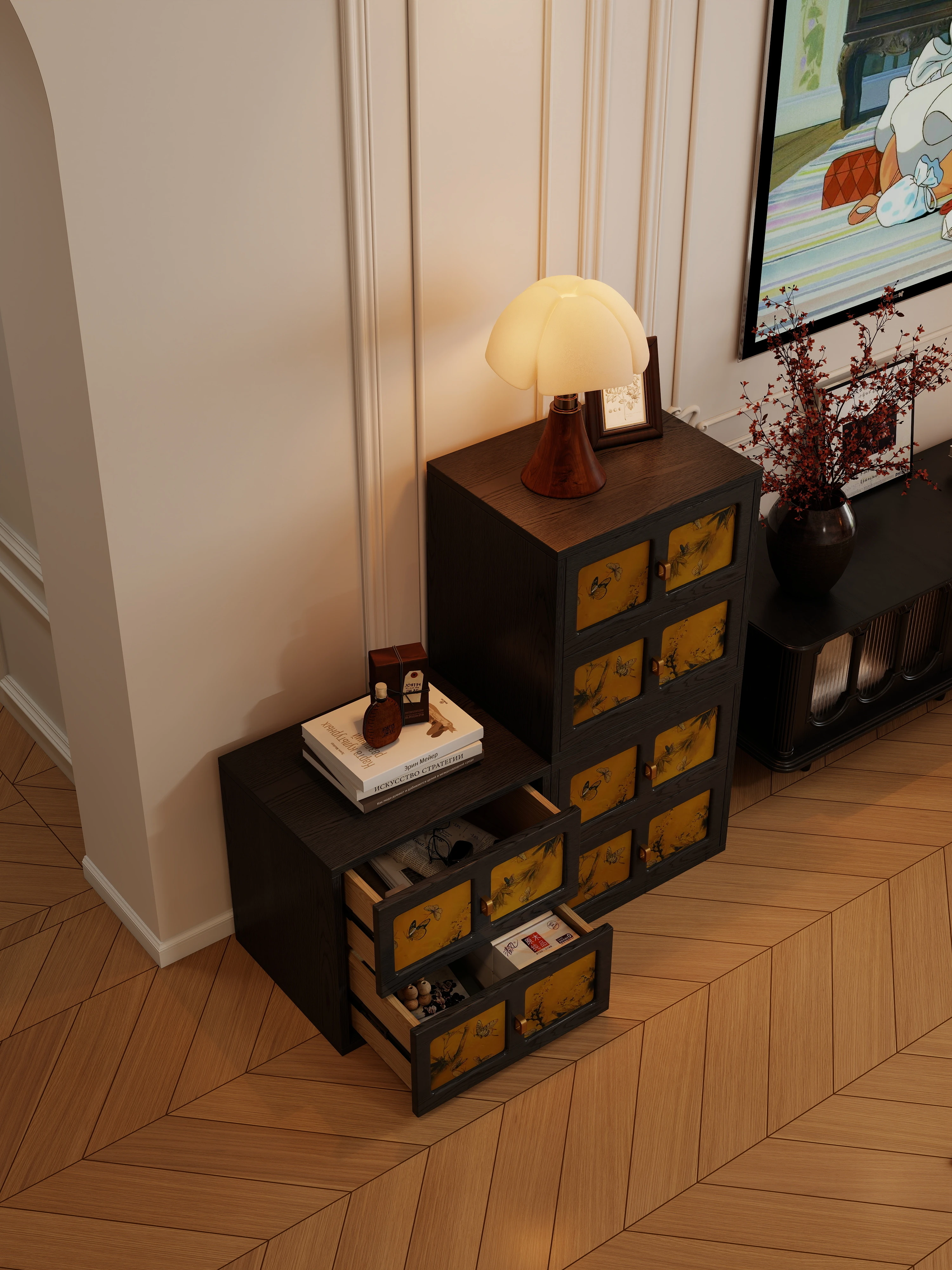 Vintage Solid Wood Dresser - French Style Retro Combination Cabinet for Living Room, Wall-Mounted Storage Unit, Elegant Xiangyun Fabric Kamen Cabinet, Perfect for Organizing and Displaying Your Treasures