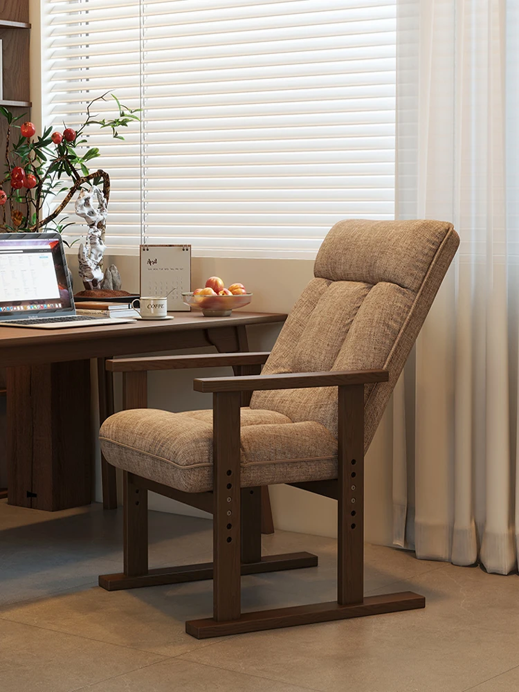 Ergonomic Solid Wood Computer Chair for Home - Comfortable Long Sitting Desk Sofa Chair with Reclining Backrest - Ideal Office Seat for Relaxation and Productivity