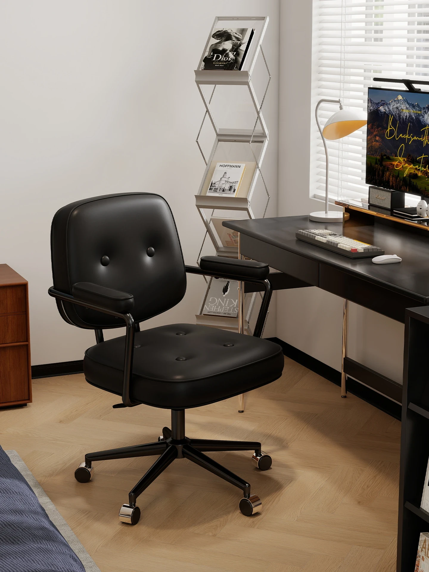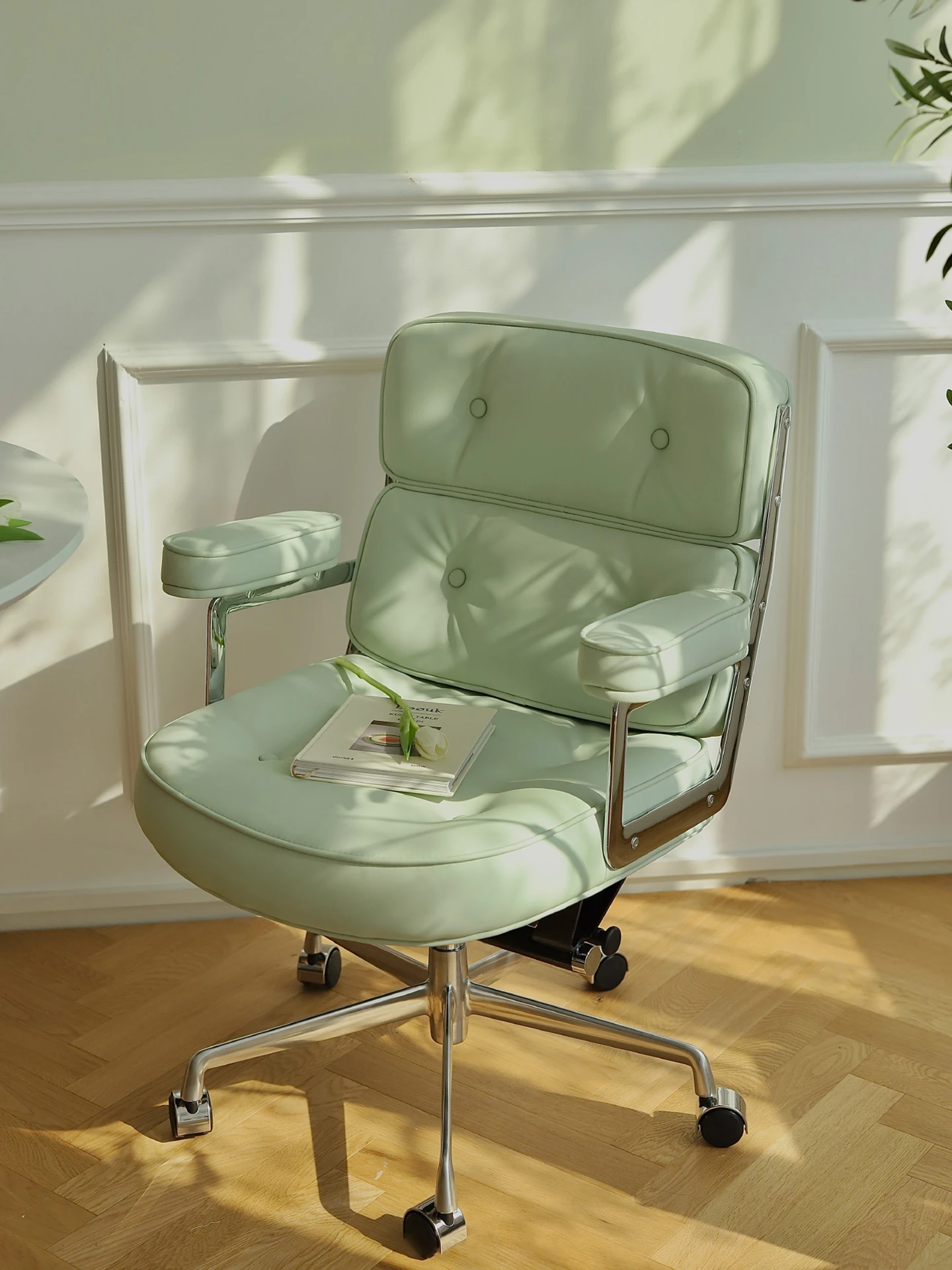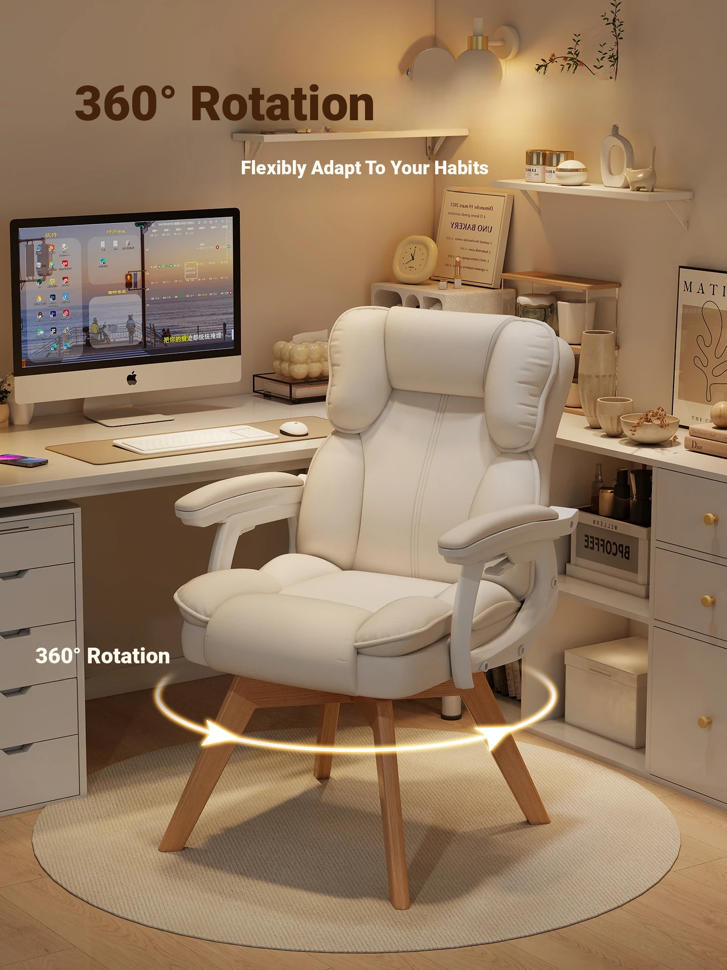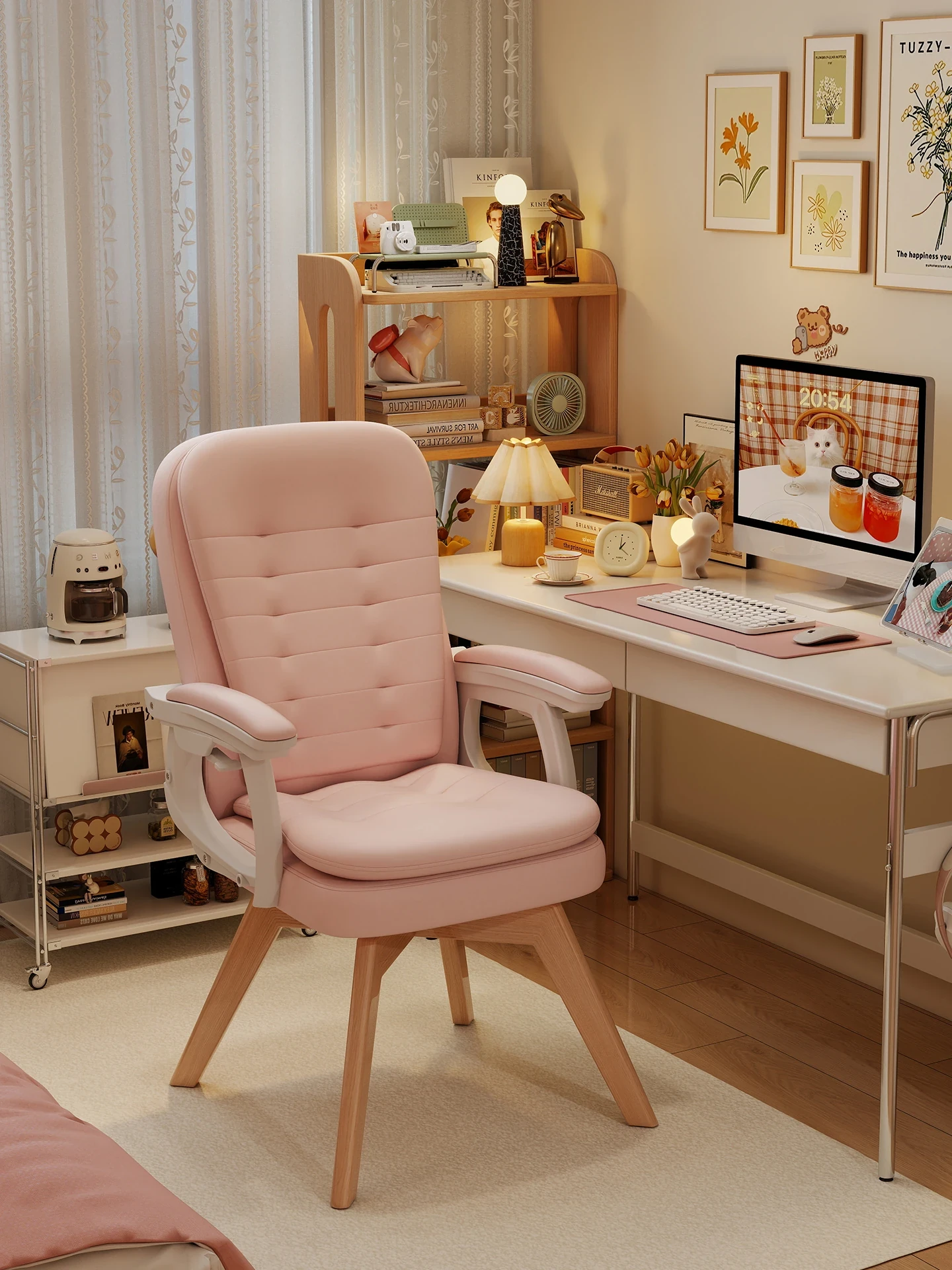 Ergonomic Home Office Chair for Women - Comfortable and Stylish Desk Chair with Wooden Legs, Rotatable Design, Perfect for Long Hours of Sitting and Relaxation in Your Bedroom or Study.