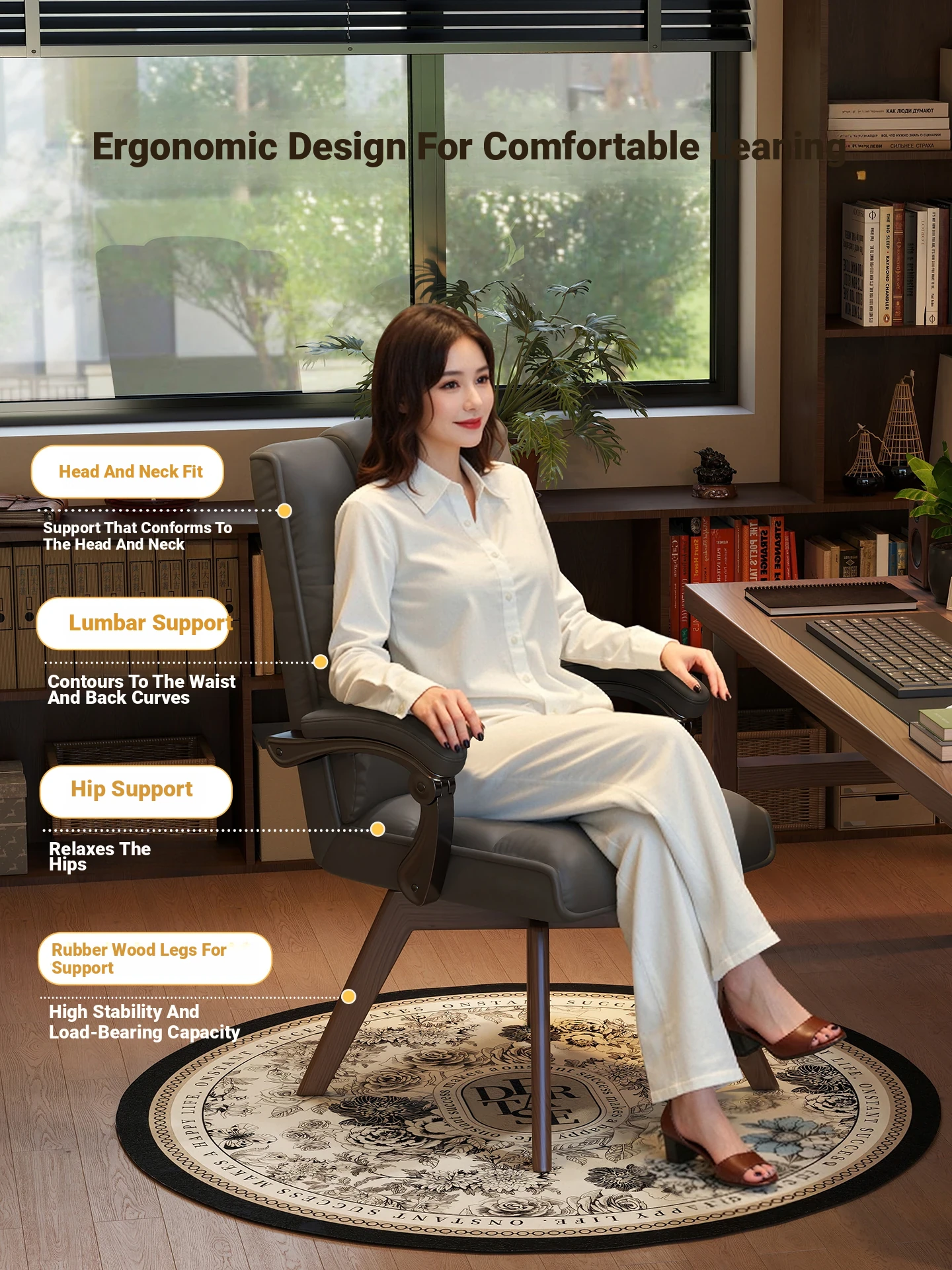 Ergonomic Home Office Chair - Comfortable Reclining Desk Chair for Reading & Work, Ideal for Long Hours of Sitting, Perfect for Study Rooms and Offices
