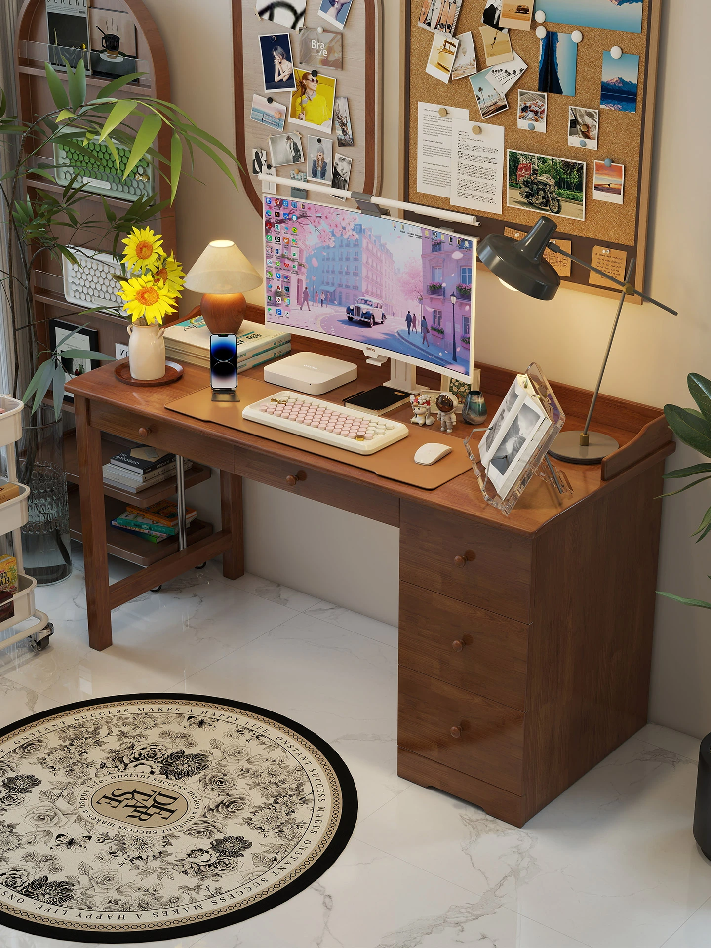 Solid Wood Computer Desk with Drawer Cabinet - Vintage Style Writing Desk for Bedroom, Office & Study - Perfect for Students and Home Use