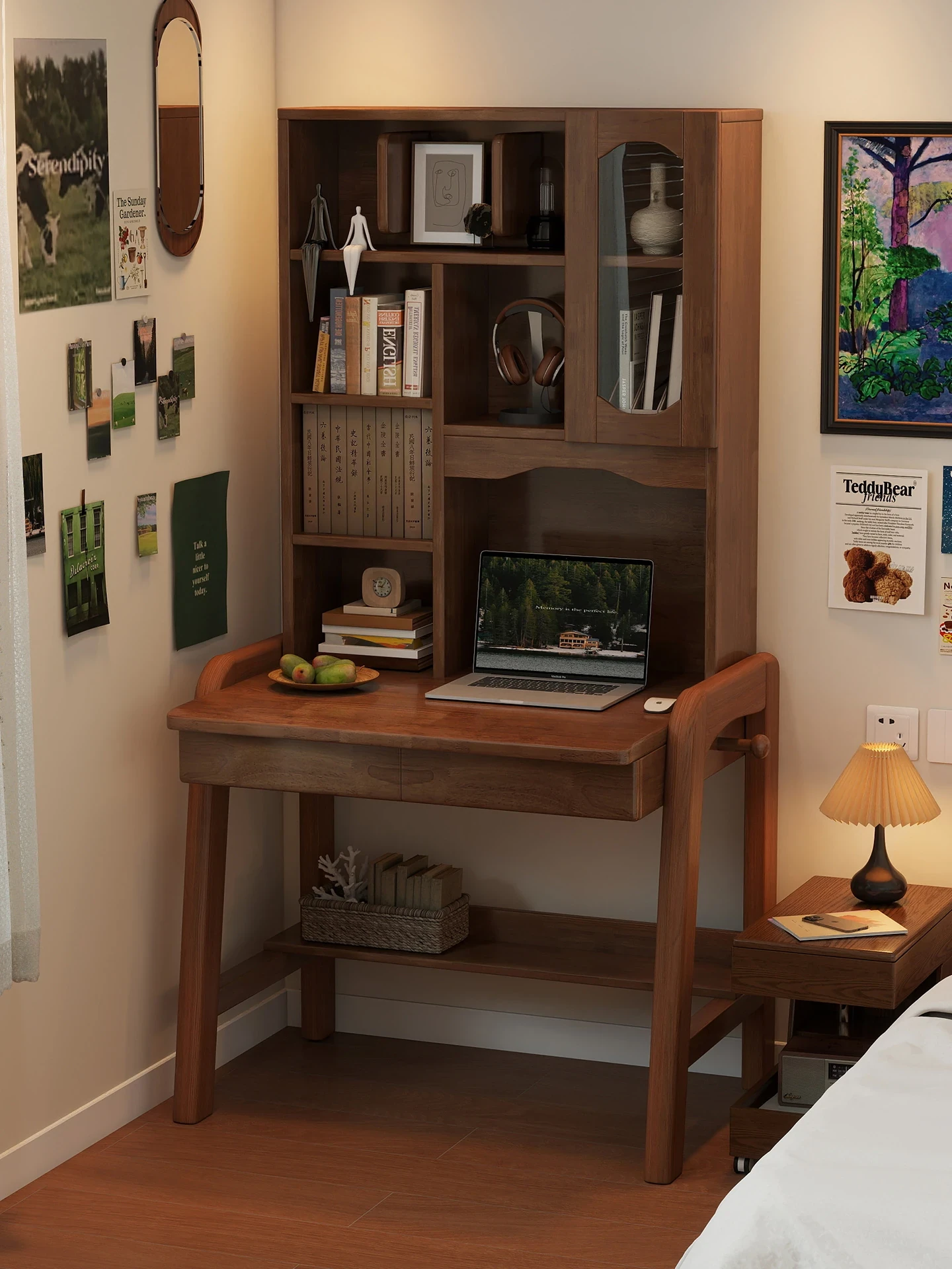 Compact Solid Wood Lift-Desk and Bookshelf Combo for High School Students - Perfect Study Table for Writing and Computer Use in Bedrooms