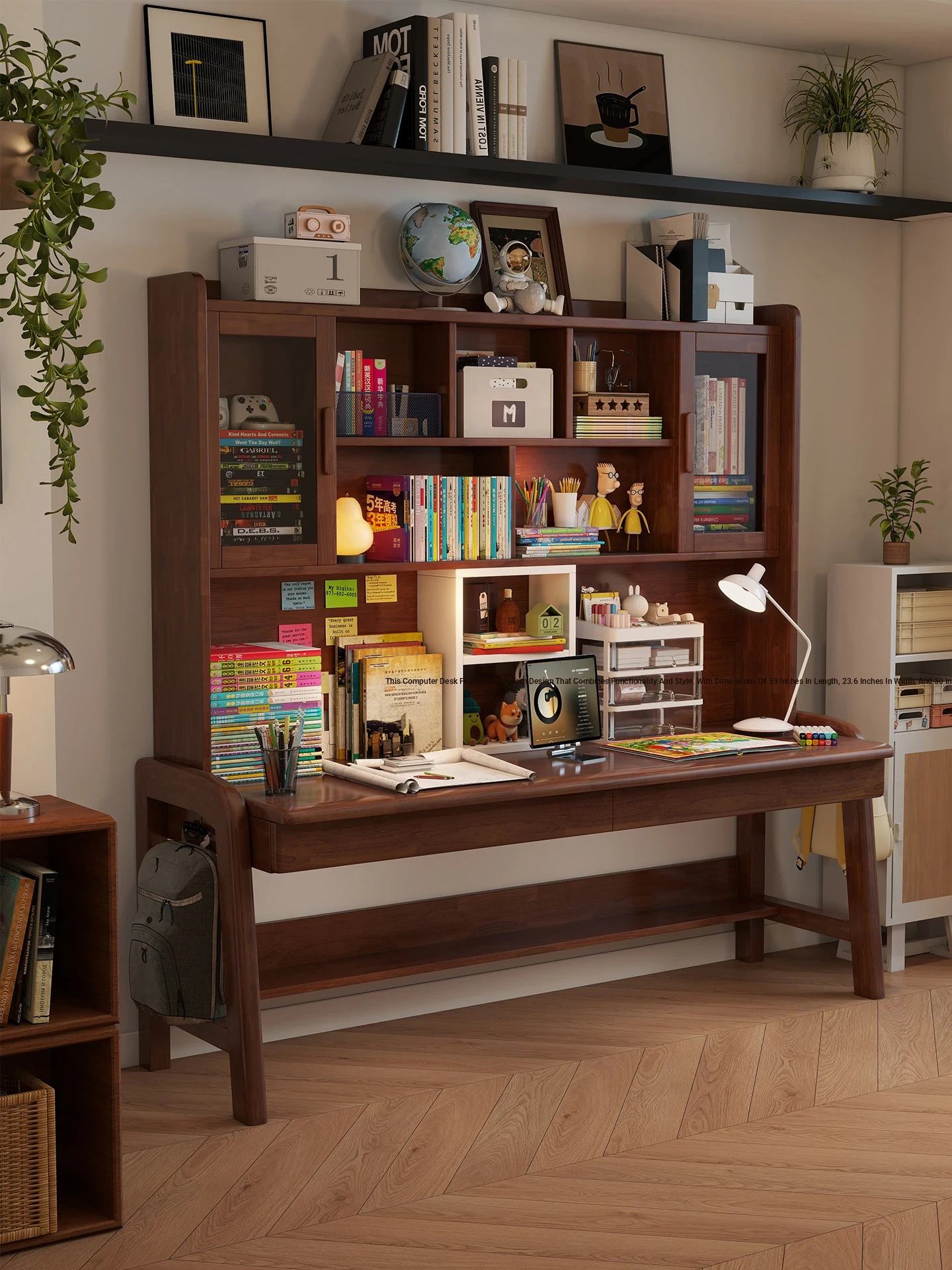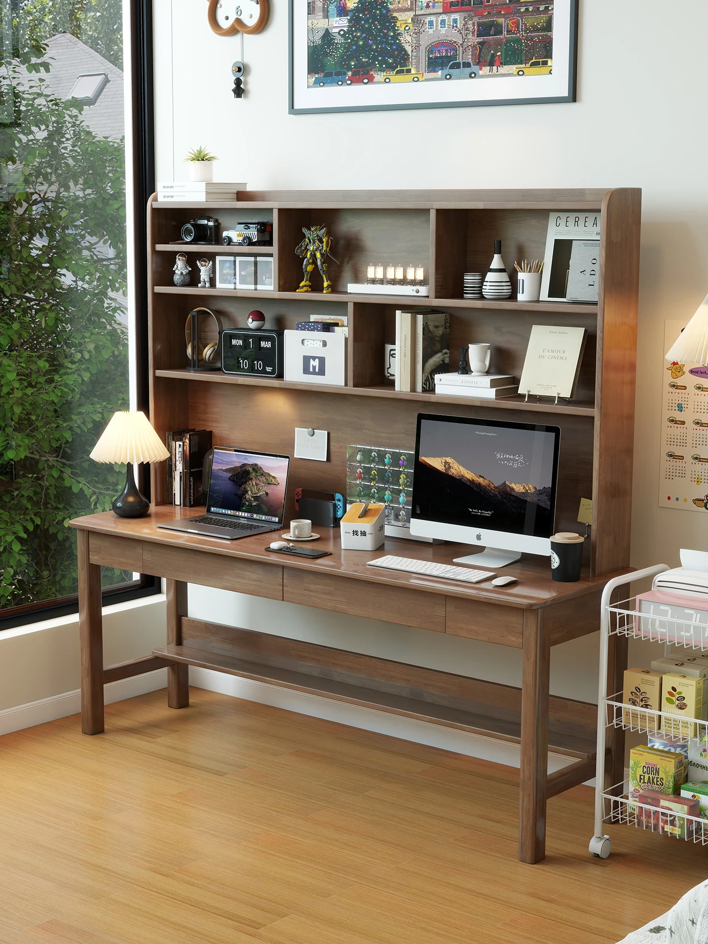 Solid Wood Dual-Purpose Desk and Bookshelf – Minimalist Computer Office Desk for Living Room, Ideal Study Table for Students to Read and Write