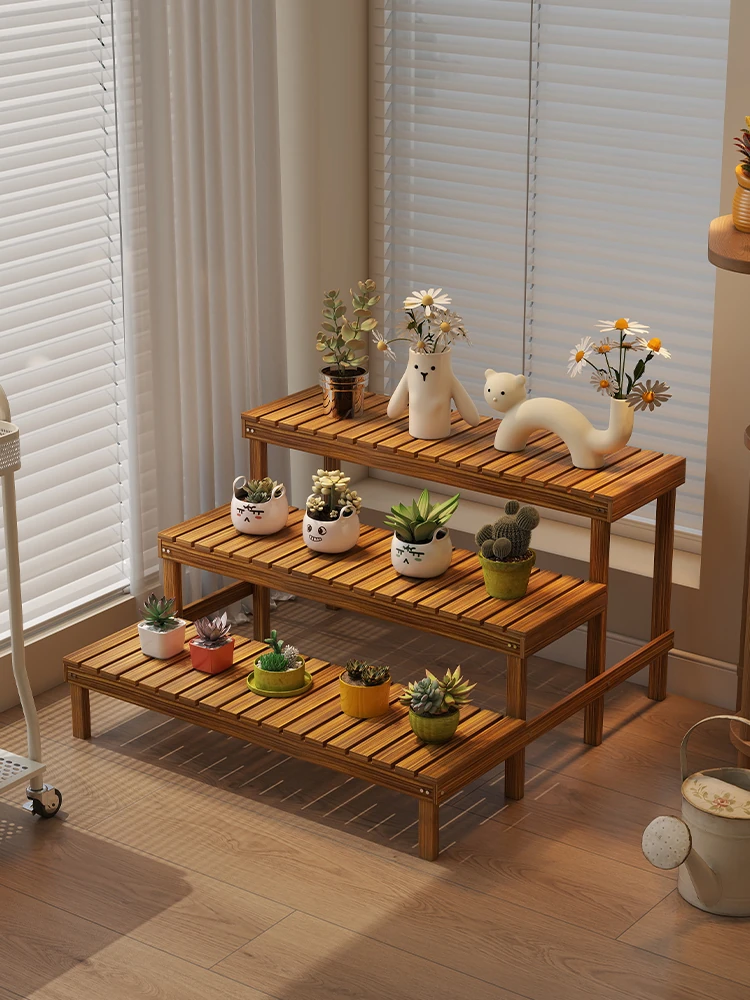 Indoor Multi-Layer Solid Wood Balcony Plant Stand - Stylish Floor Storage Rack for Succulents and Potted Plants, Perfect for Living Room Decoration and Organization