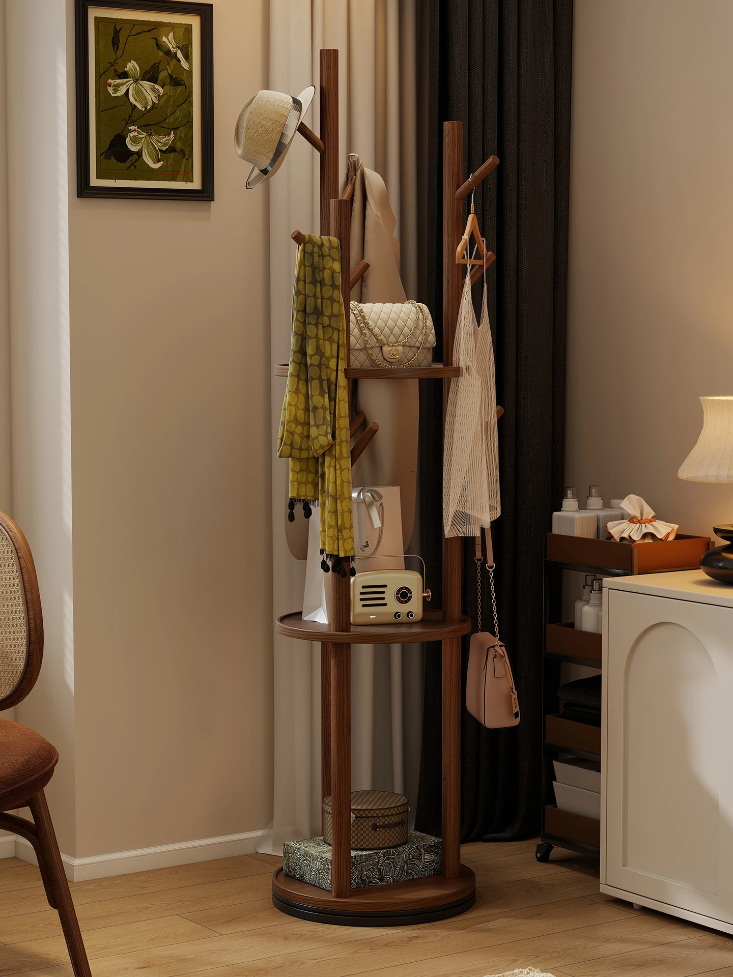 Solid Wood Rotating Coat Rack - Stylish Freestanding Clothes Organizer for Bedroom and Living Room, Perfect for Hanging Coats and Accessories
