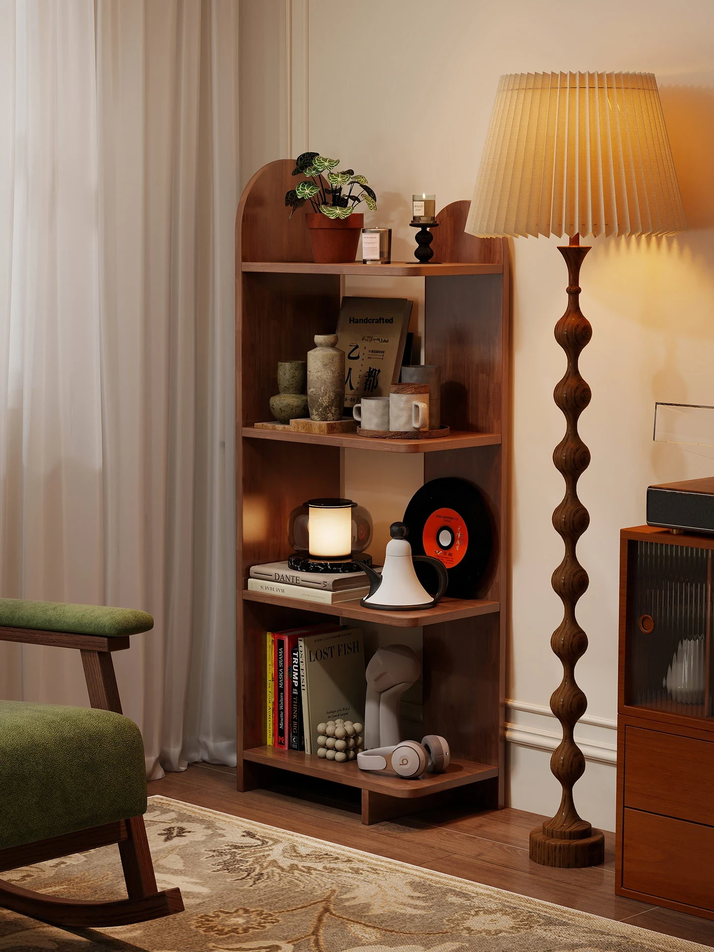 Vintage Solid Wood Corner Bookshelf - Multi-Layer Storage Rack for Living Room - Elegant Corner Display Cabinet for Organizing Your Space
