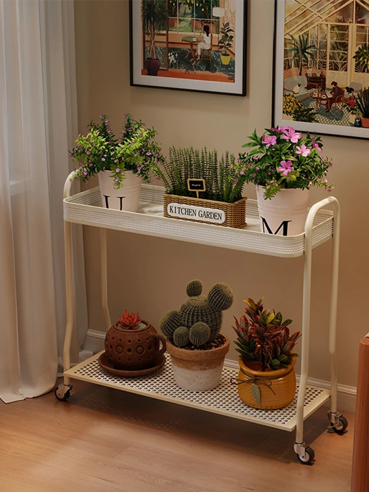 Elevate Your Space: Creamy-Style Movable Balcony Planter Stand - Two-Tiered Iron Succulent Rack for Living Room and Storage Solutions