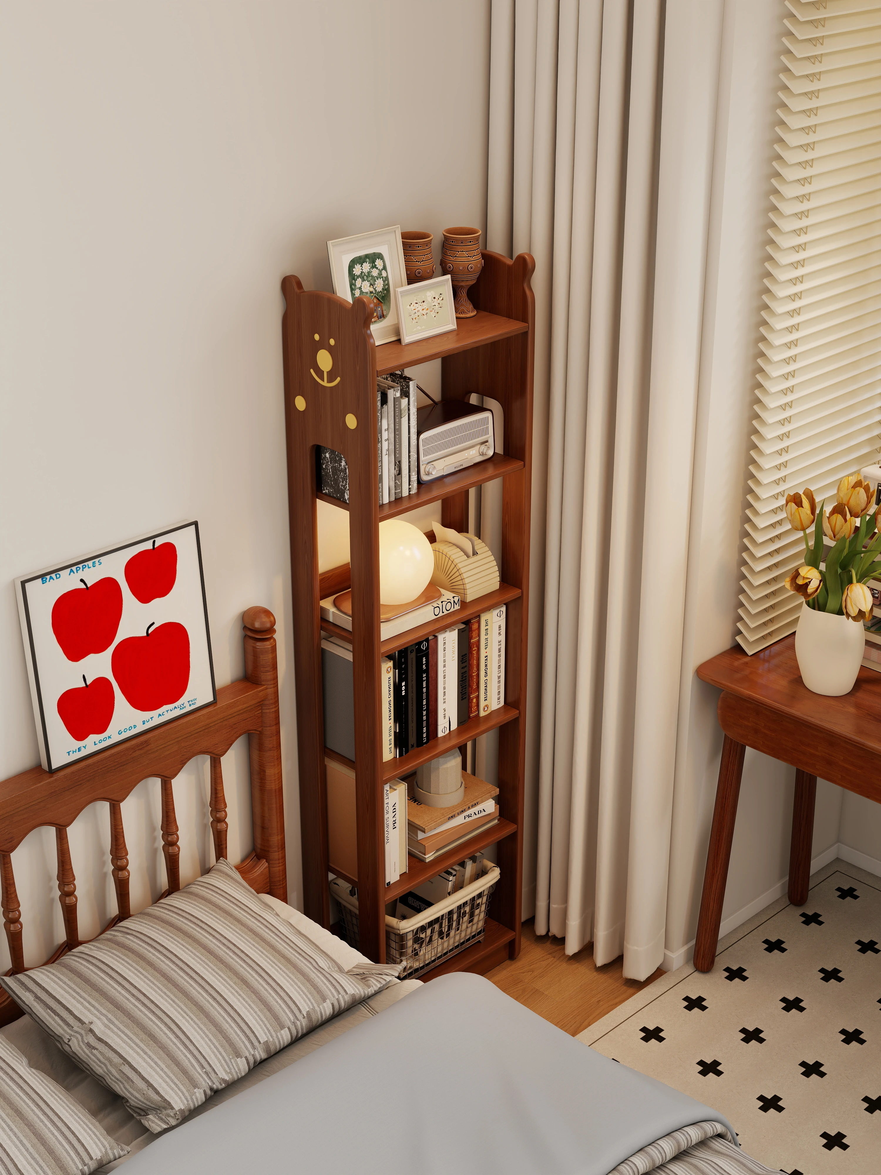 Solid Wood Bookshelf - Space-Saving Freestanding Storage Rack for Kids - Narrow Wall-Mounted Bookcase for Bedroom - Simple Organizer for Students and Home Use