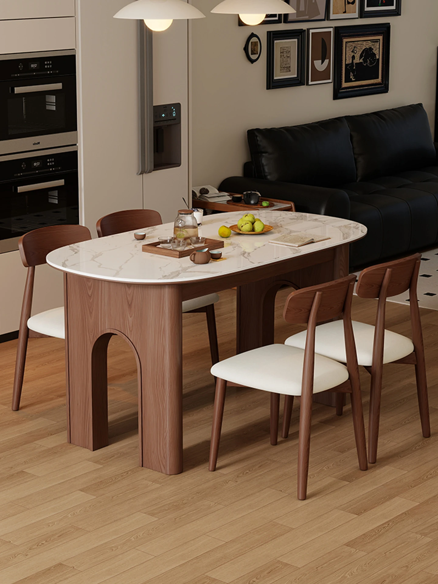 Elegant Oval Dining Table with Stone Top for Small Spaces - Vintage Style Living Room Table, Perfect for Modern Homes - 2025 New Arrival