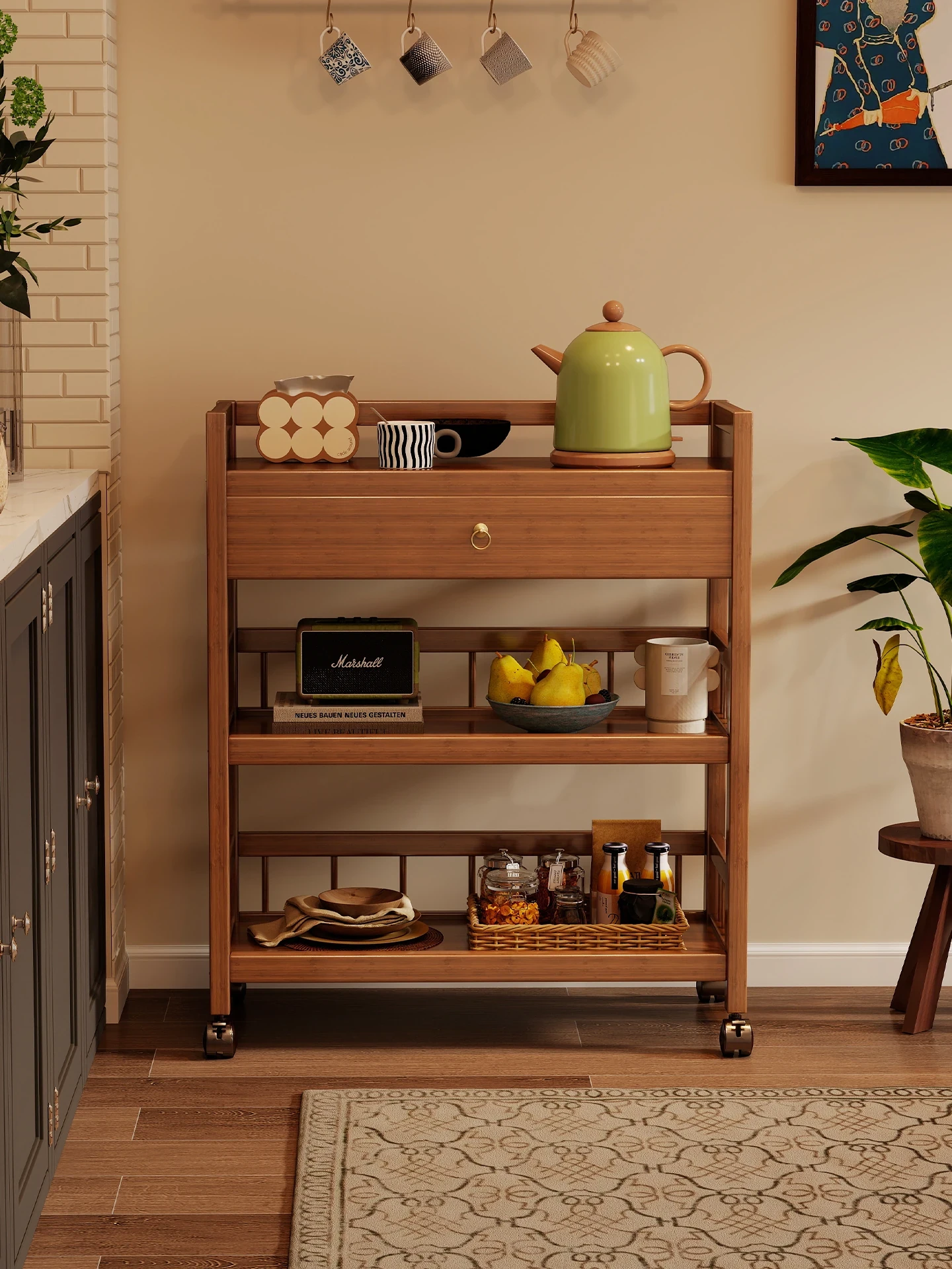Vintage Style Rolling Kitchen Cart - Multi-Tier Storage Rack for Living Room - Mobile Side Table with Large Capacity for Organizing and Displaying