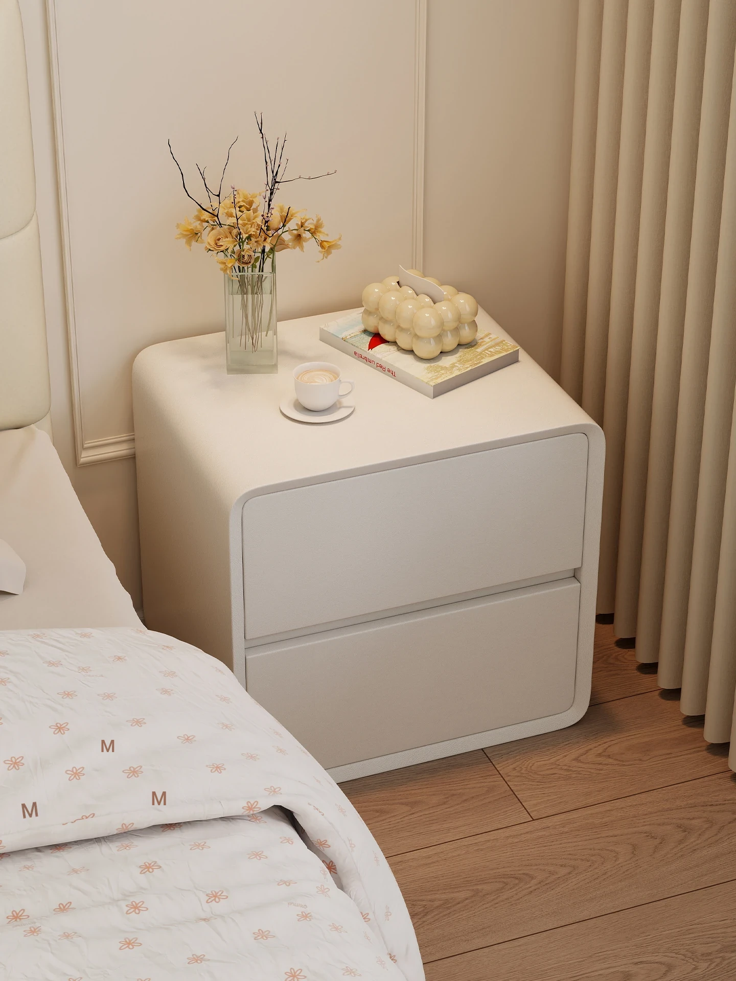 Modern Cream Bedside Table - Minimalist Solid Wood Nightstand for Bedroom, Stylish Storage Cabinet for Small Spaces, Perfect for Organizing Essentials