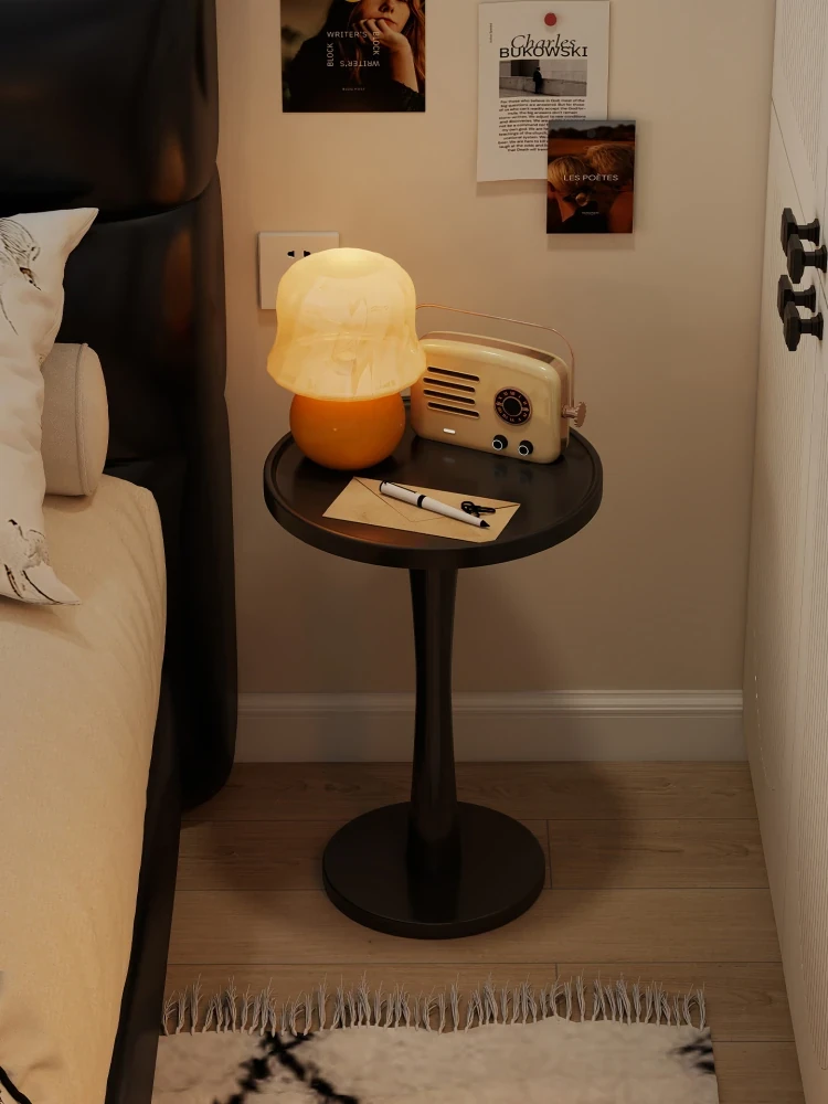 Vintage Small Bedroom Nightstand Round Solid Wood Side Table - Creative Narrow Bedside Storage for Your Cozy Space