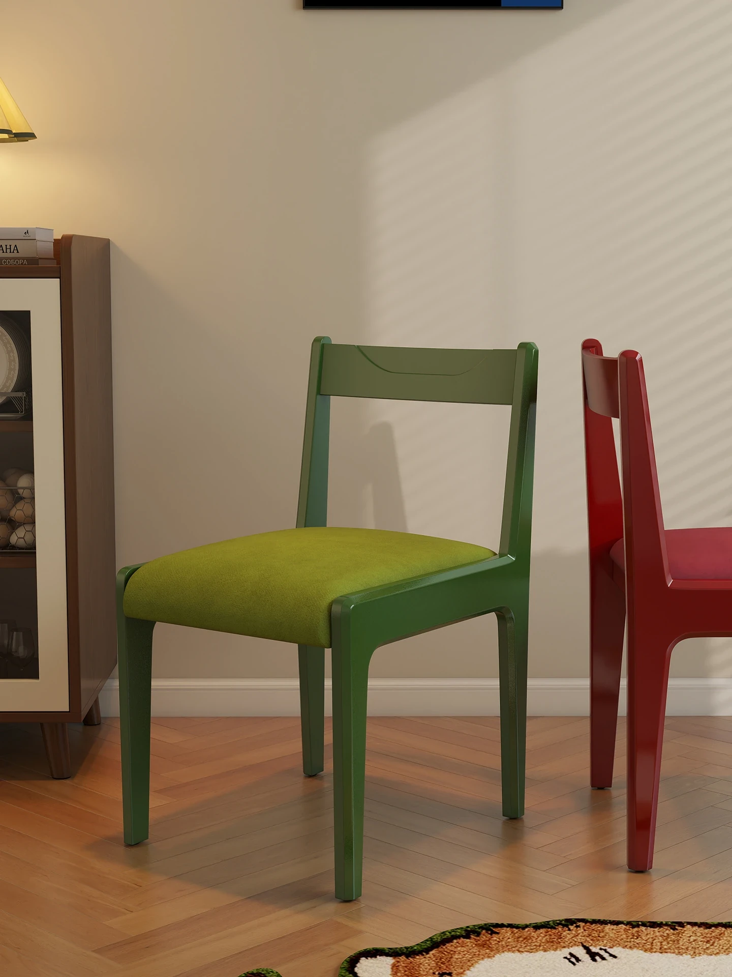 Vintage Minimalist Solid Wood Dining Chair in Antique Red – Perfect for Small Spaces, Ideal for Dining Tables and Makeup Stations.
