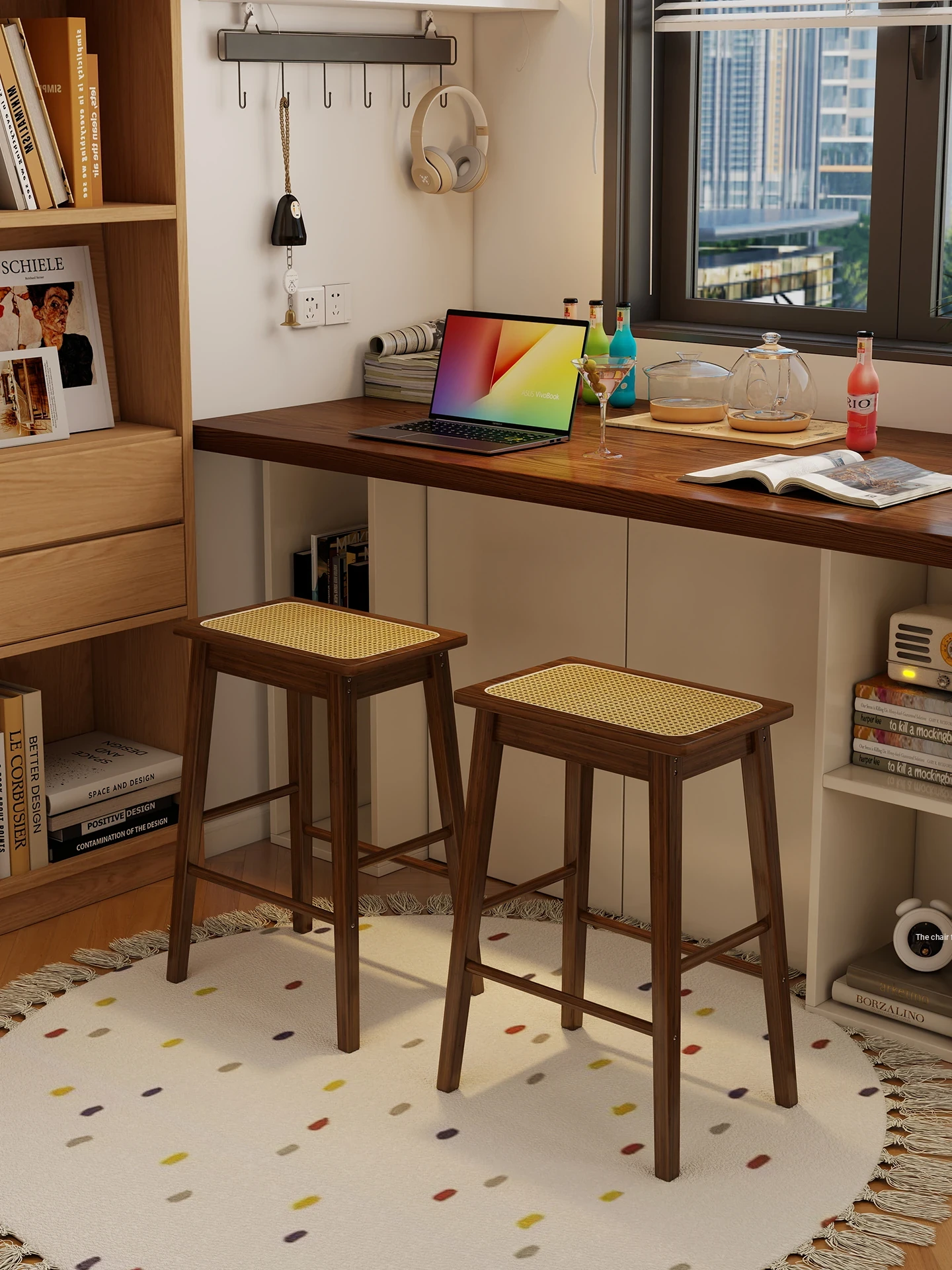 Vintage Rattan Bar Stool for Home Island Dining - Stylish Bamboo High Chair for Small Spaces, Japanese Retro Design for Restaurants and Cafes