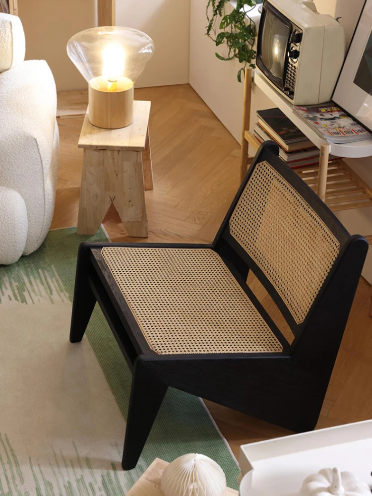 Vintage Solid Wood Rattan Chair - Wabi-Sabi Style Retro Single Lounge Chair for Living Room, Balcony, and Guesthouses - Perfect Relaxation and Support!