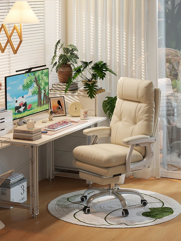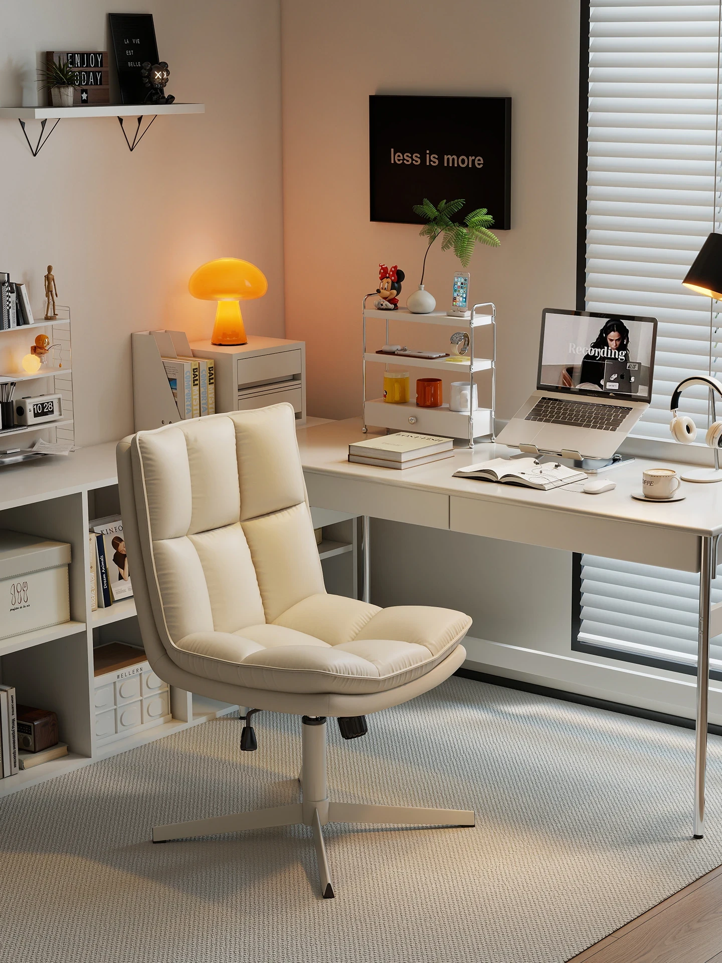 Elegant Cream-Style Desk Chair for Bedroom: Comfortable High-Back Office Chair for Home & Study, Perfect for Long Hours of Sitting, Stylish and Functional Swivel Design