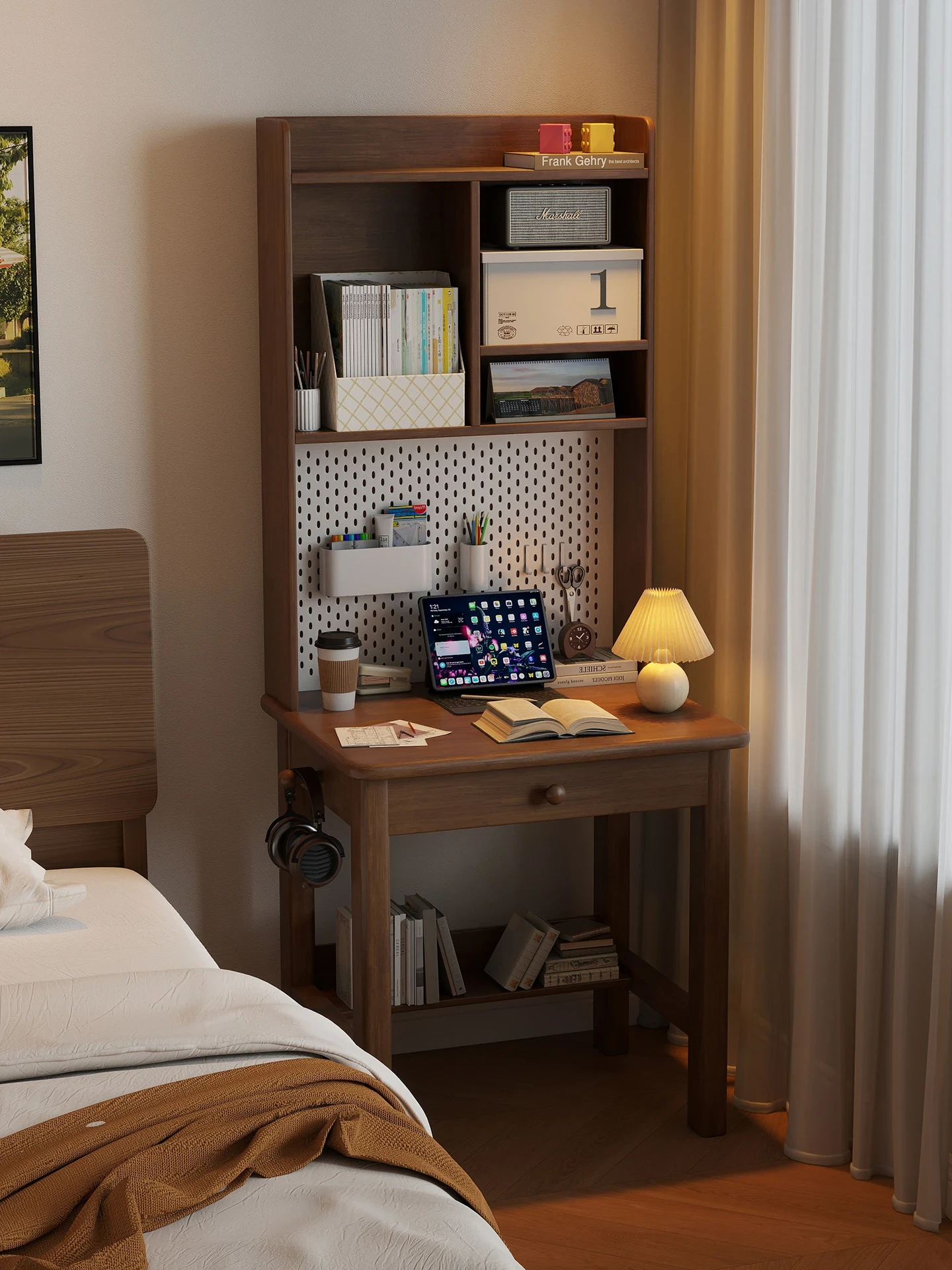 Compact All-Wood Study Desk and Bookshelf Combo for Small Spaces – Ideal Bedside Table for Students in Middle and High School, Perfect for Writing and Studying