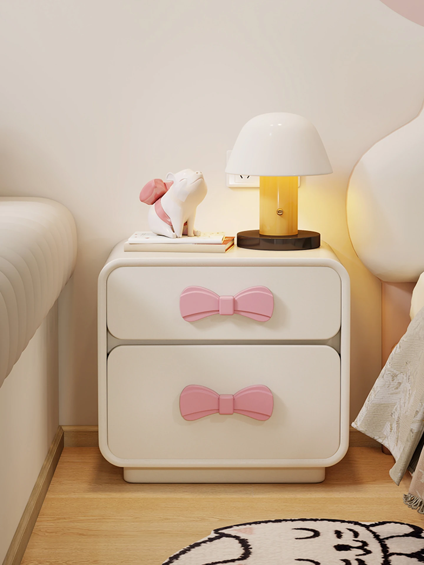 Charming Pink Bow Nightstand for Girls' Bedroom - Cute Creamy Bedside Cabinet, Creative Solid Wood Storage for Kids
