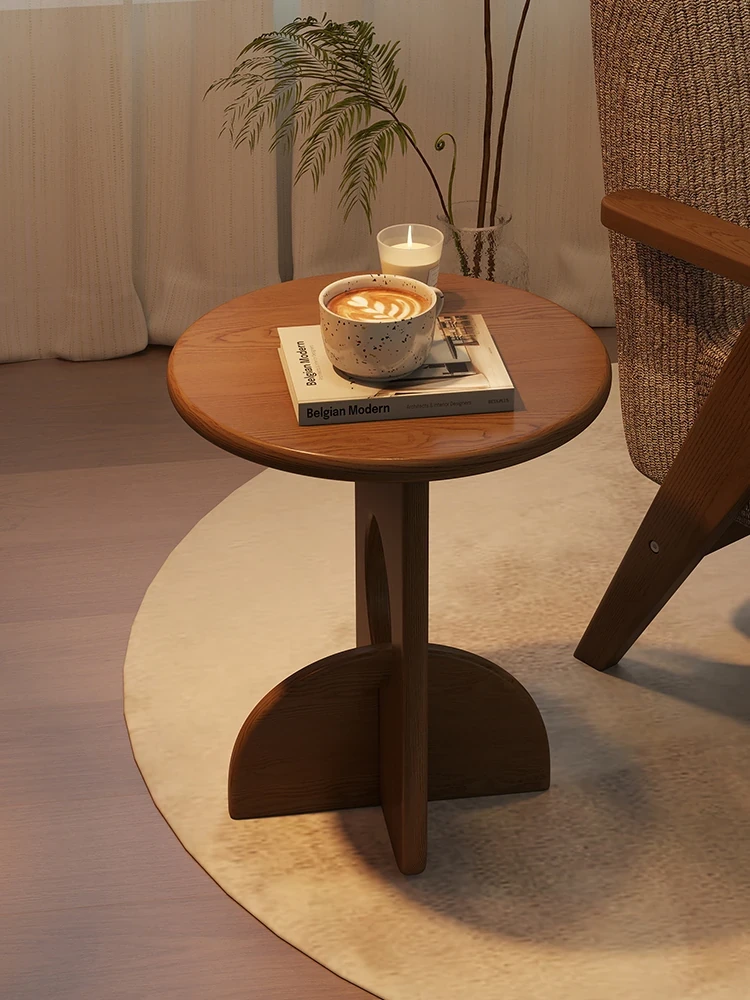 Vintage Solid Wood Small Table - Chic Round Coffee Table for Balcony, Sofa Side, or Living Room - Perfect for Small Spaces and Cozy Gatherings