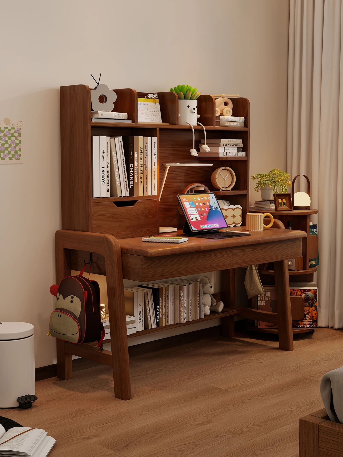 Height Adjustable Solid Wood Desk with Bookshelf and Cabinet - Ideal Study Desk for Middle School Students, Perfect for Home, Bedroom, and Study Room