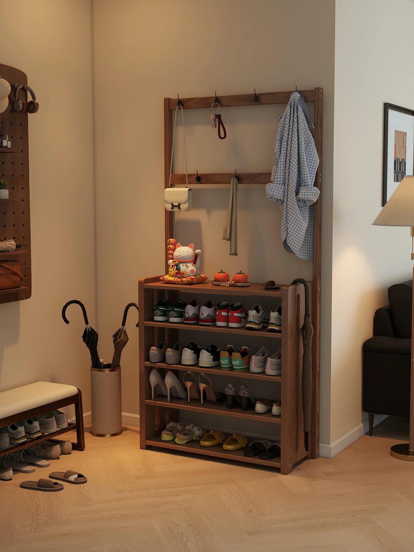 All-Wood Shoe Rack and Coat Stand Combo - Space-Saving Multi-Layer Storage Solution for Home Entryway, Slim Design Perfect for Narrow Spaces