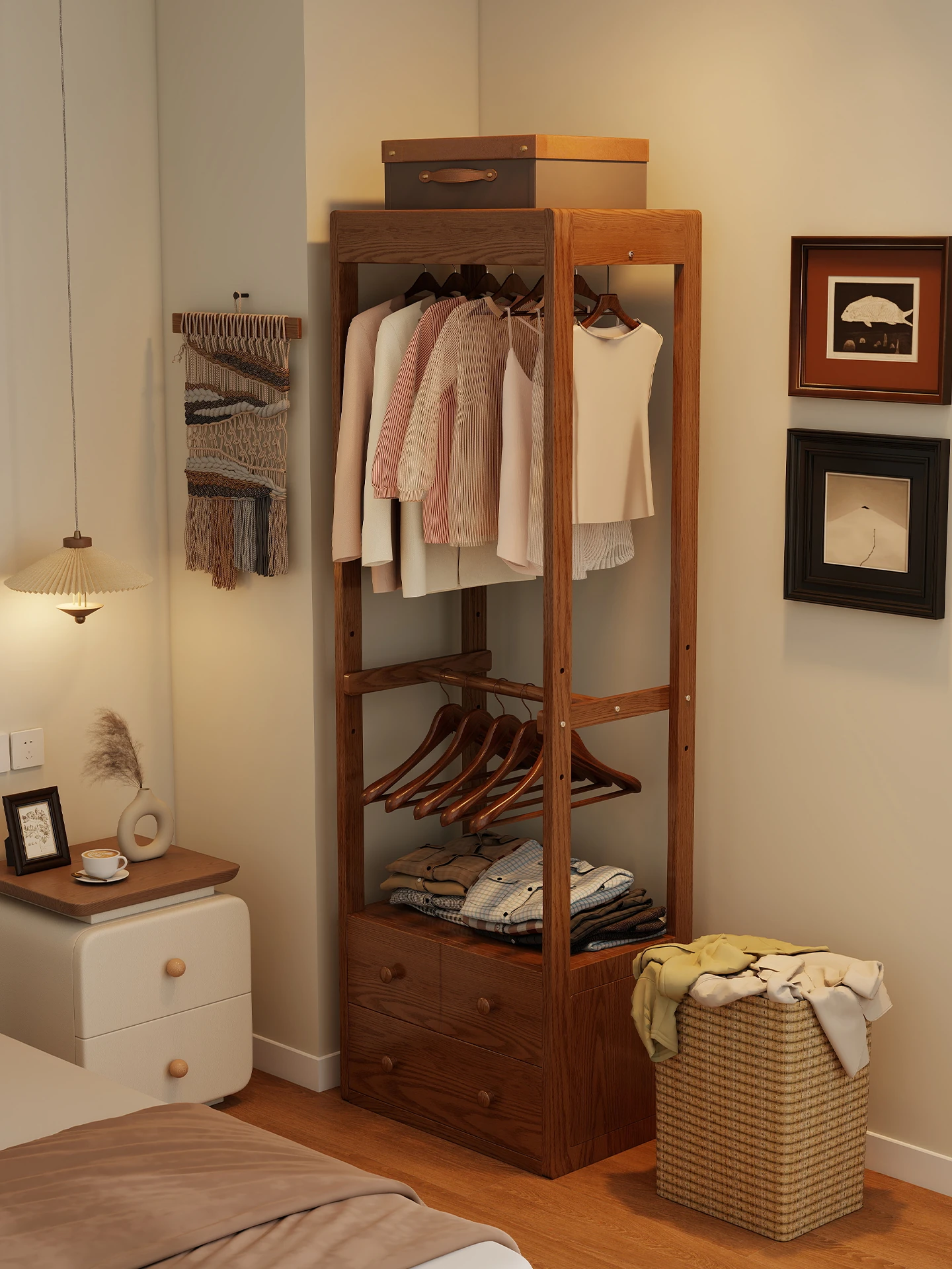 Solid Wood Coat Rack and Nightstand Combo - Stylish Floor-Standing Bedroom Storage Unit with Drawer and Clothes Hanging Space, Perfect for Organizing Your Bedroom!