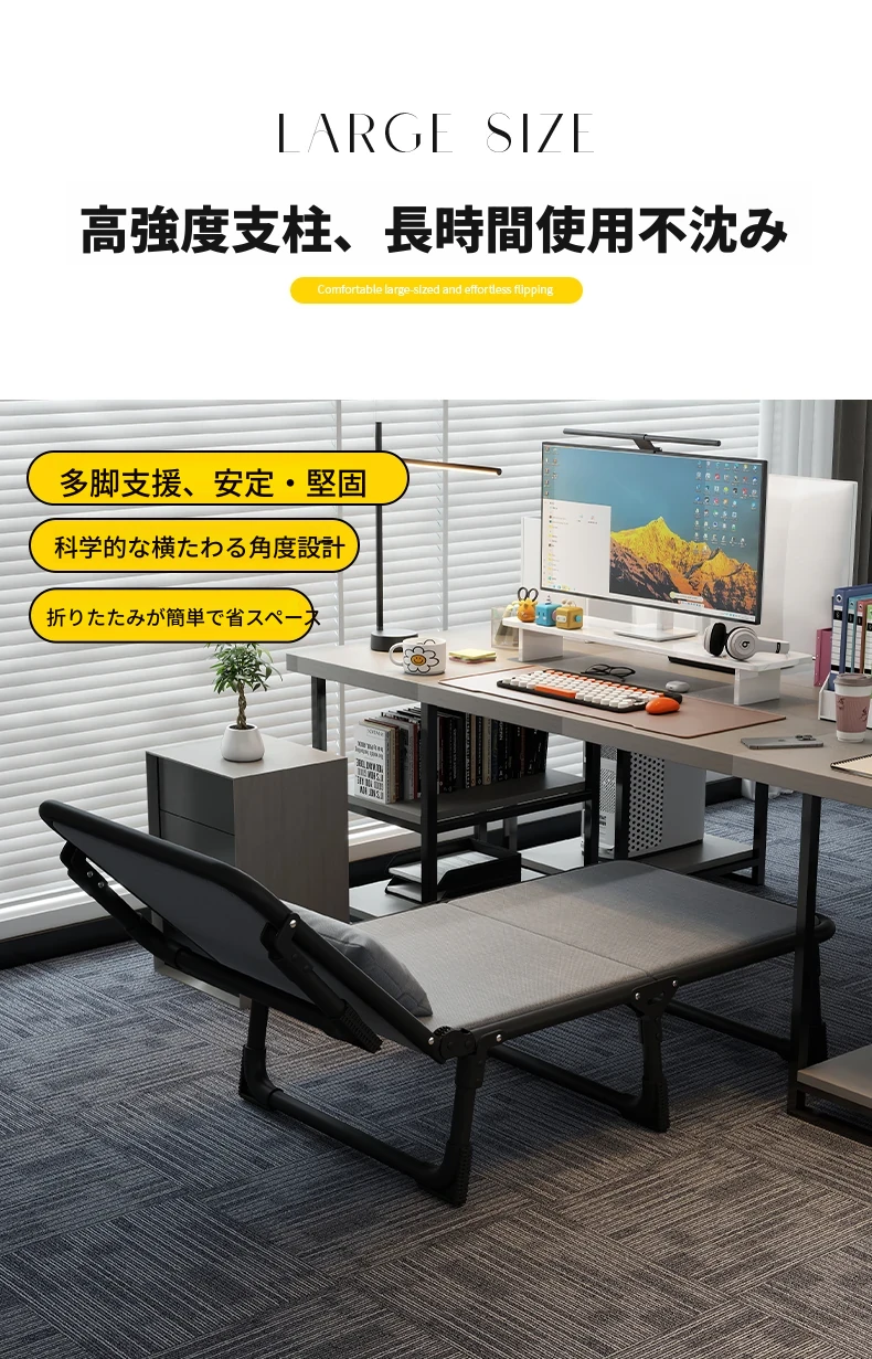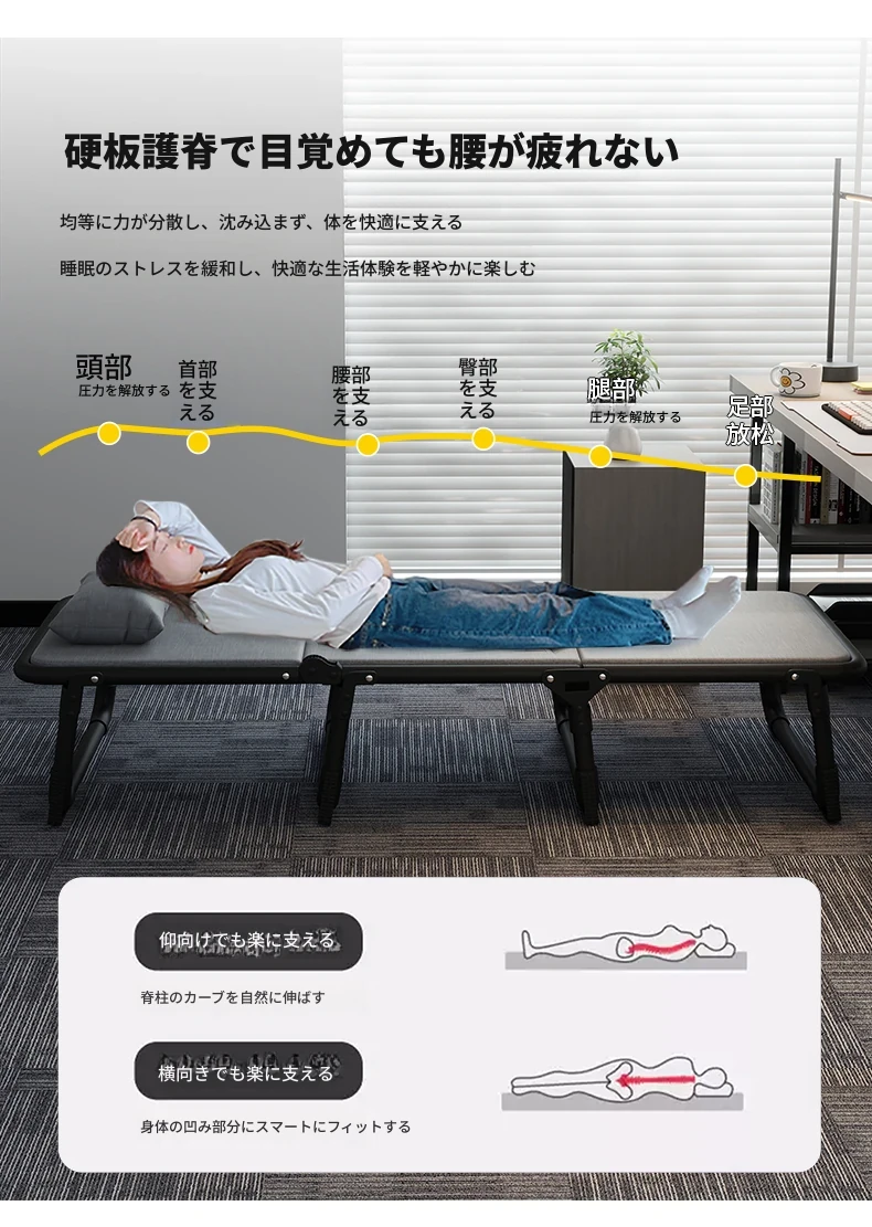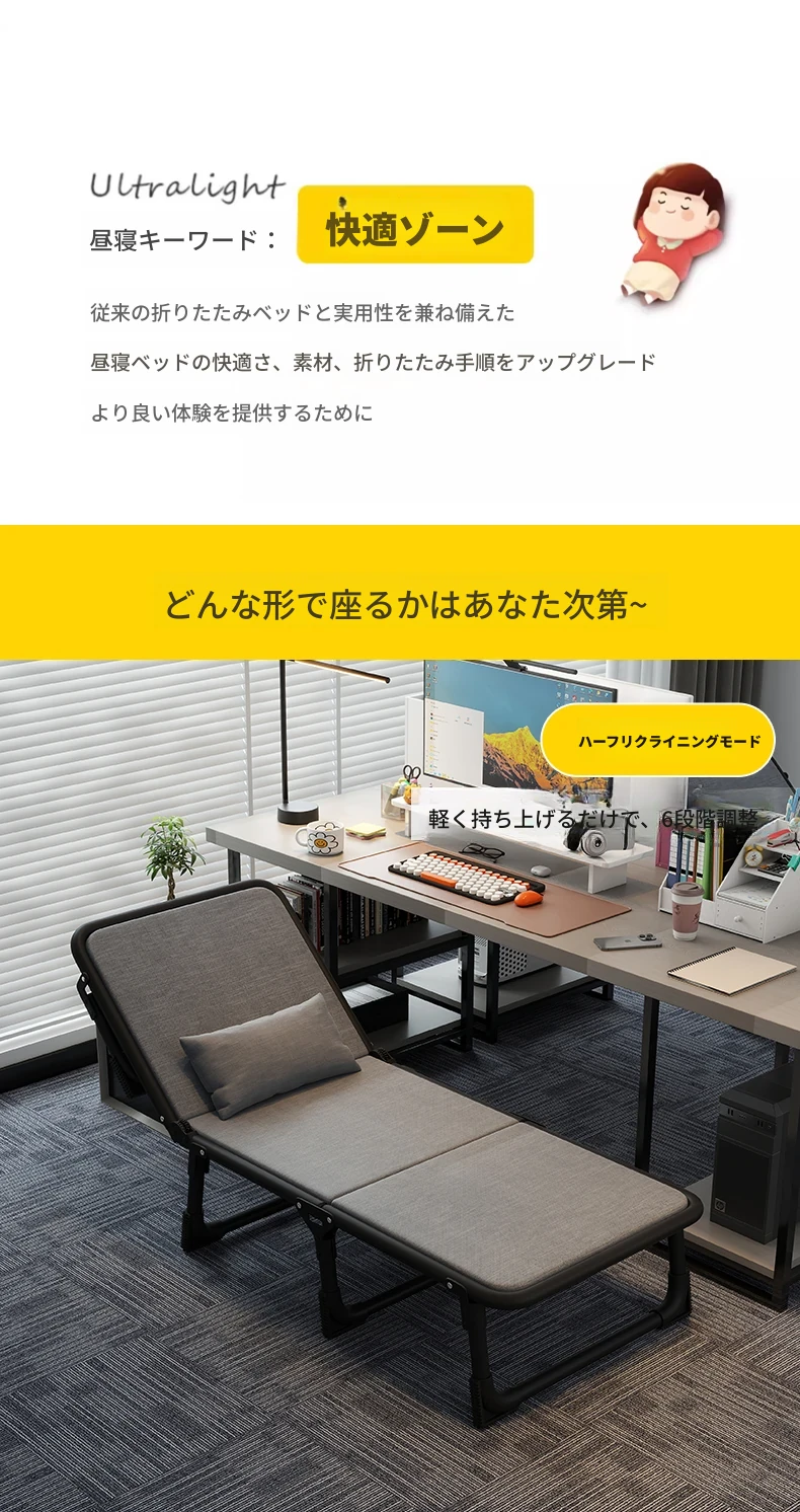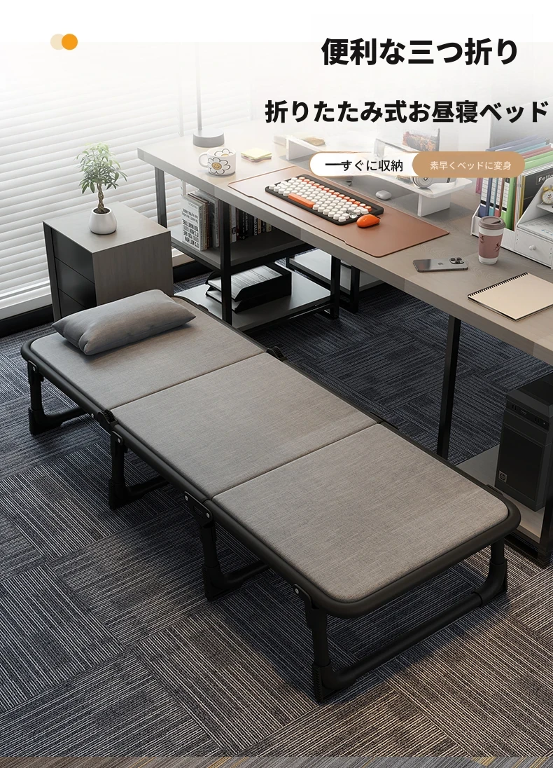 オフィス用折りたたみシングルベッド - 昼寝や休憩に最適な簡易キャンプベッド!大人向けのコンパクトなリクライニングチェアで、仕事の合間にリフレッシュしませんか?快適な睡眠体験を提供します!