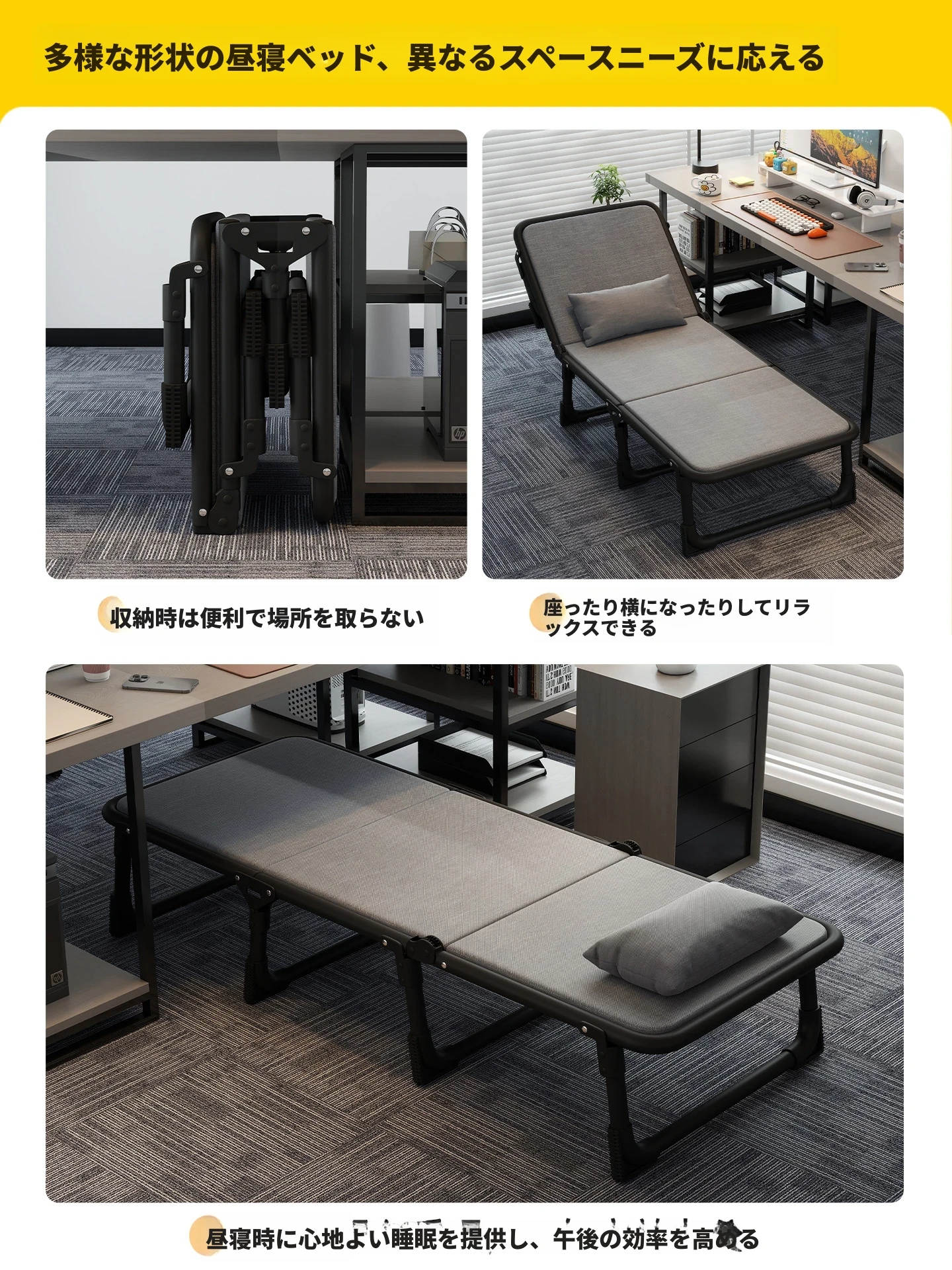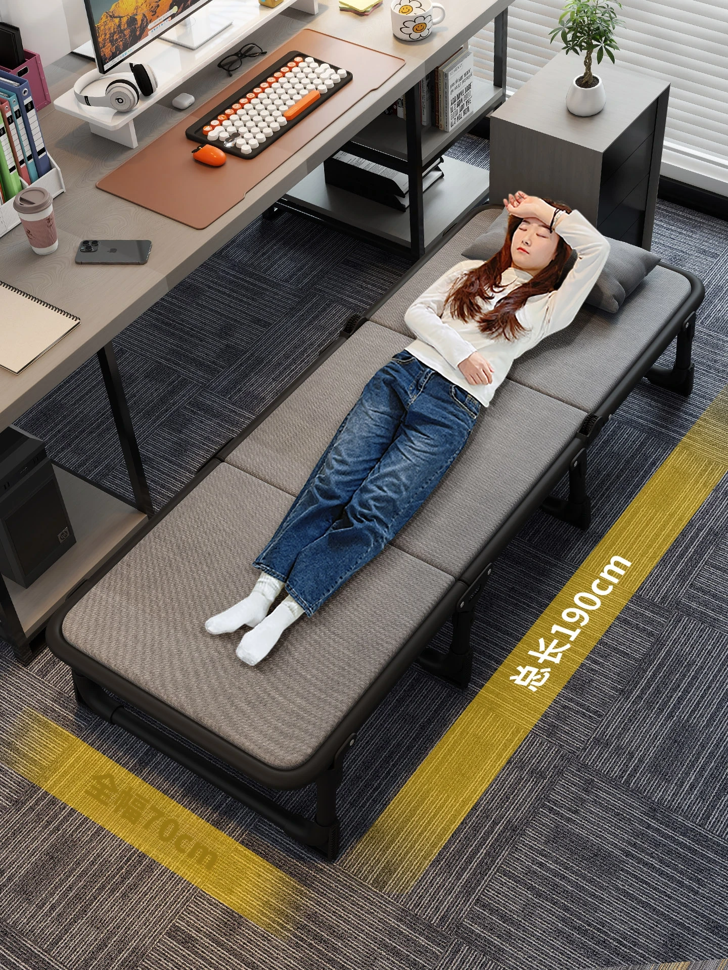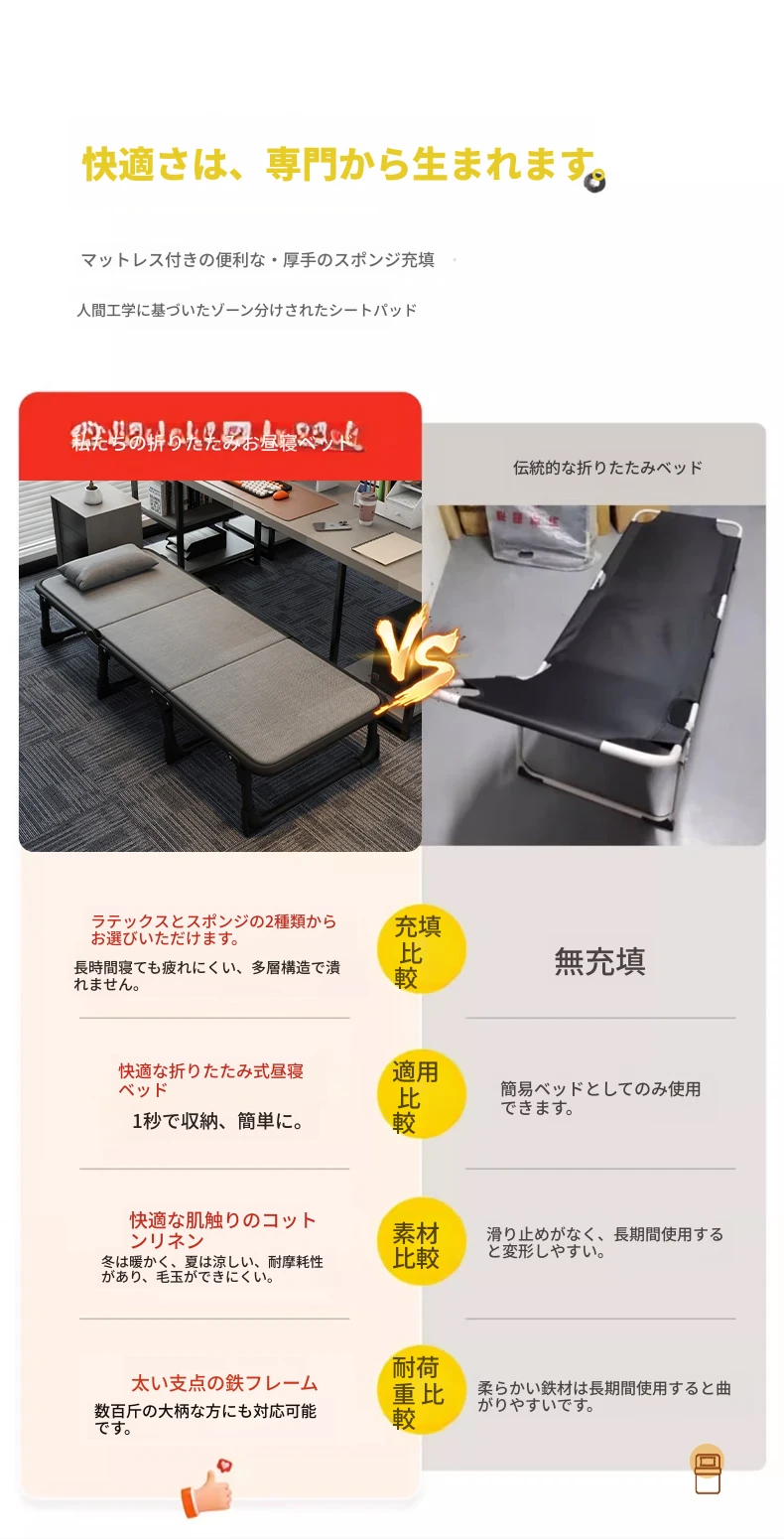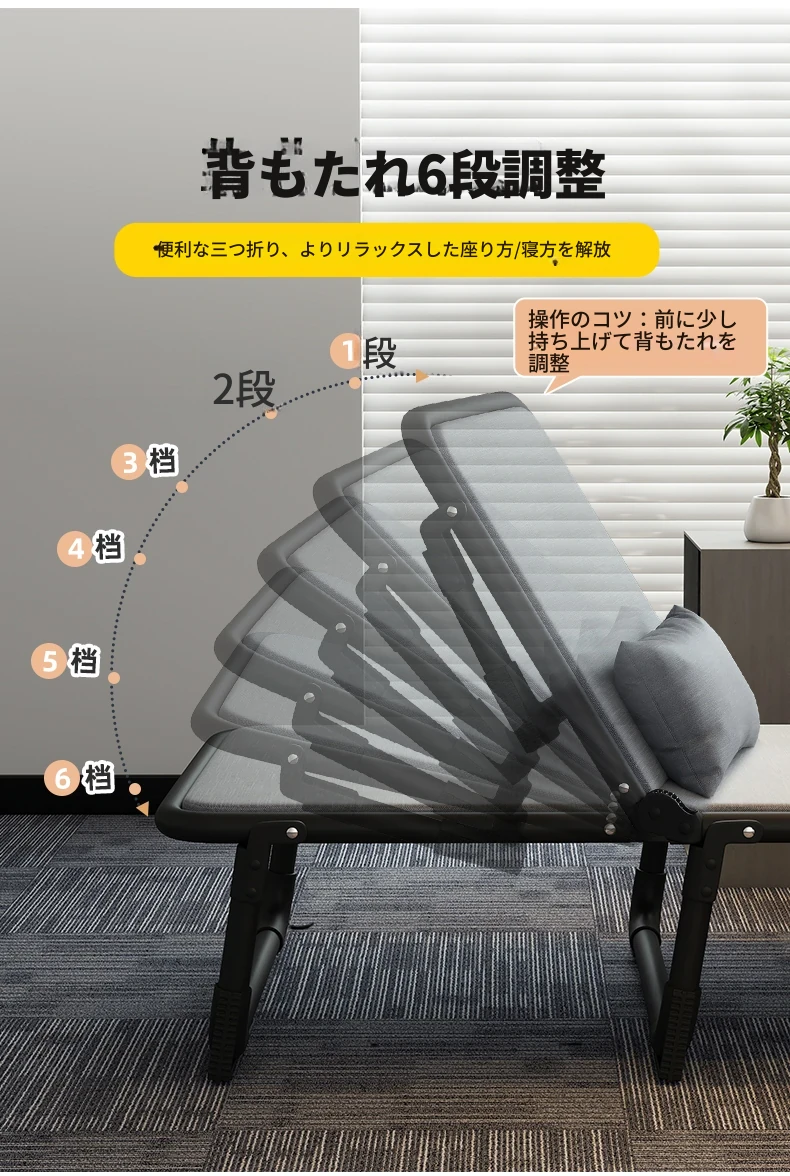 オフィス用折りたたみシングルベッド - 昼寝や休憩に最適な簡易キャンプベッド!大人向けのコンパクトなリクライニングチェアで、仕事の合間にリフレッシュしませんか?快適な睡眠体験を提供します!
