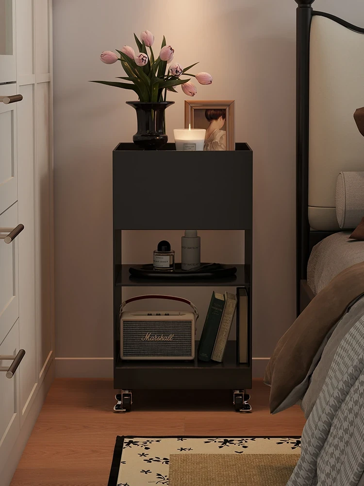 中古風スタイルのベッドサイドテーブル、シンプルでスタイリッシュなキャスター付き収納ラック。アイアン製で、家庭用やリビングのソファサイドにもぴったり。小型ながら機能的で、空間を有効活用!