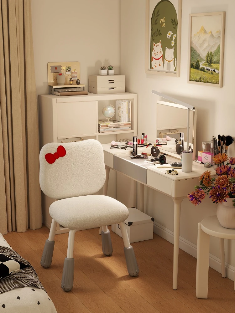 クリーム色のメイクアップスツール - シンプルでモダンなデザイン、可愛い化粧椅子。自宅でのメイクやネイルに最適!おしゃれなインテリアとしても映える、あなたのビューティータイムをより楽しく演出します。