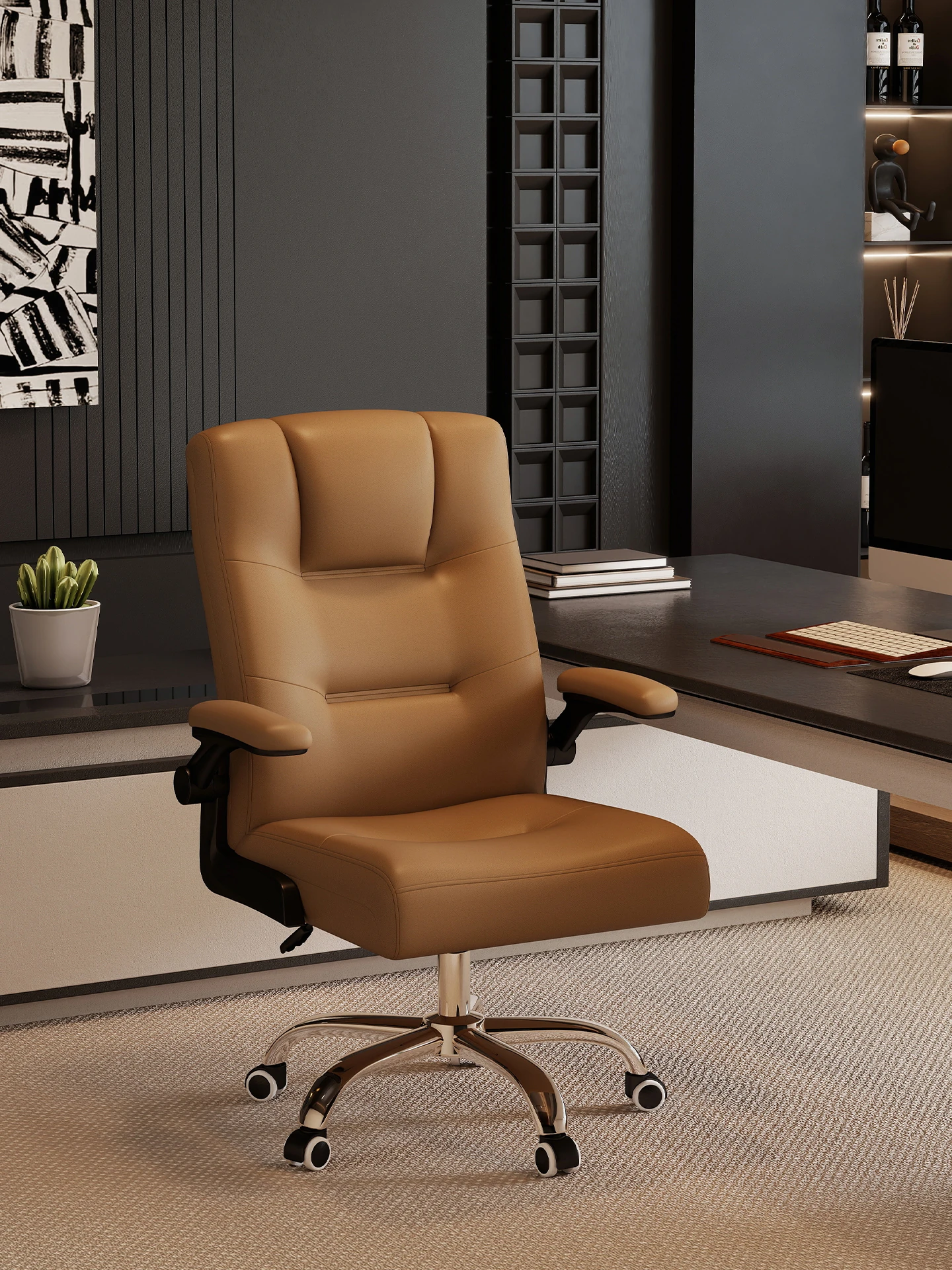 快適な座り心地!リクライニング機能付き家庭用オフィスチェア|弓形固定脚|長時間のデスクワークに最適|会議や仕事にもぴったりなボスチェア!