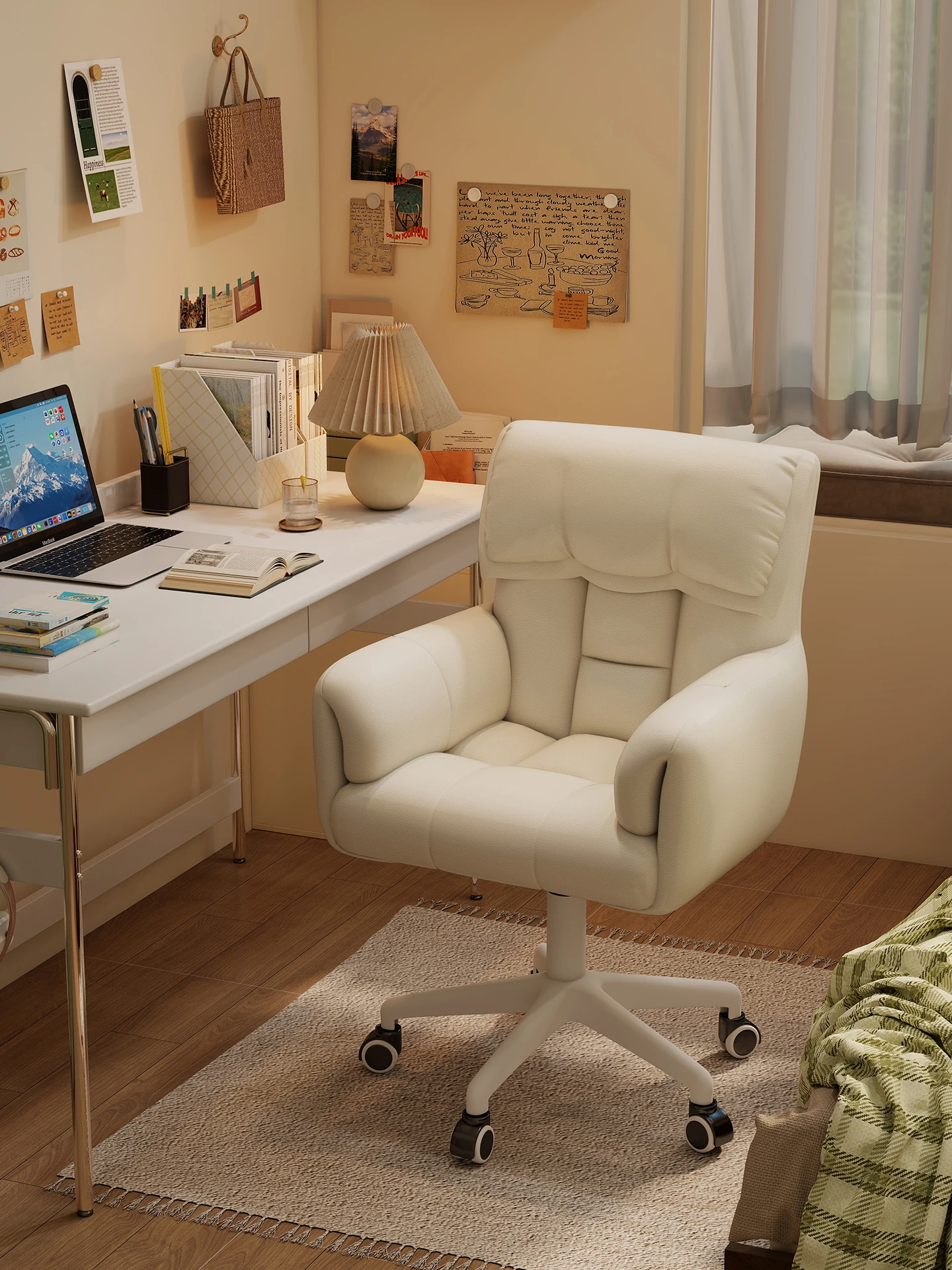 快適なデザイン!女子向けの自宅用コンピューターチェア、勉強やリラックスに最適な書斎椅子。大学生の寮生活にもぴったり、長時間座っても疲れにくい背もたれ付き!