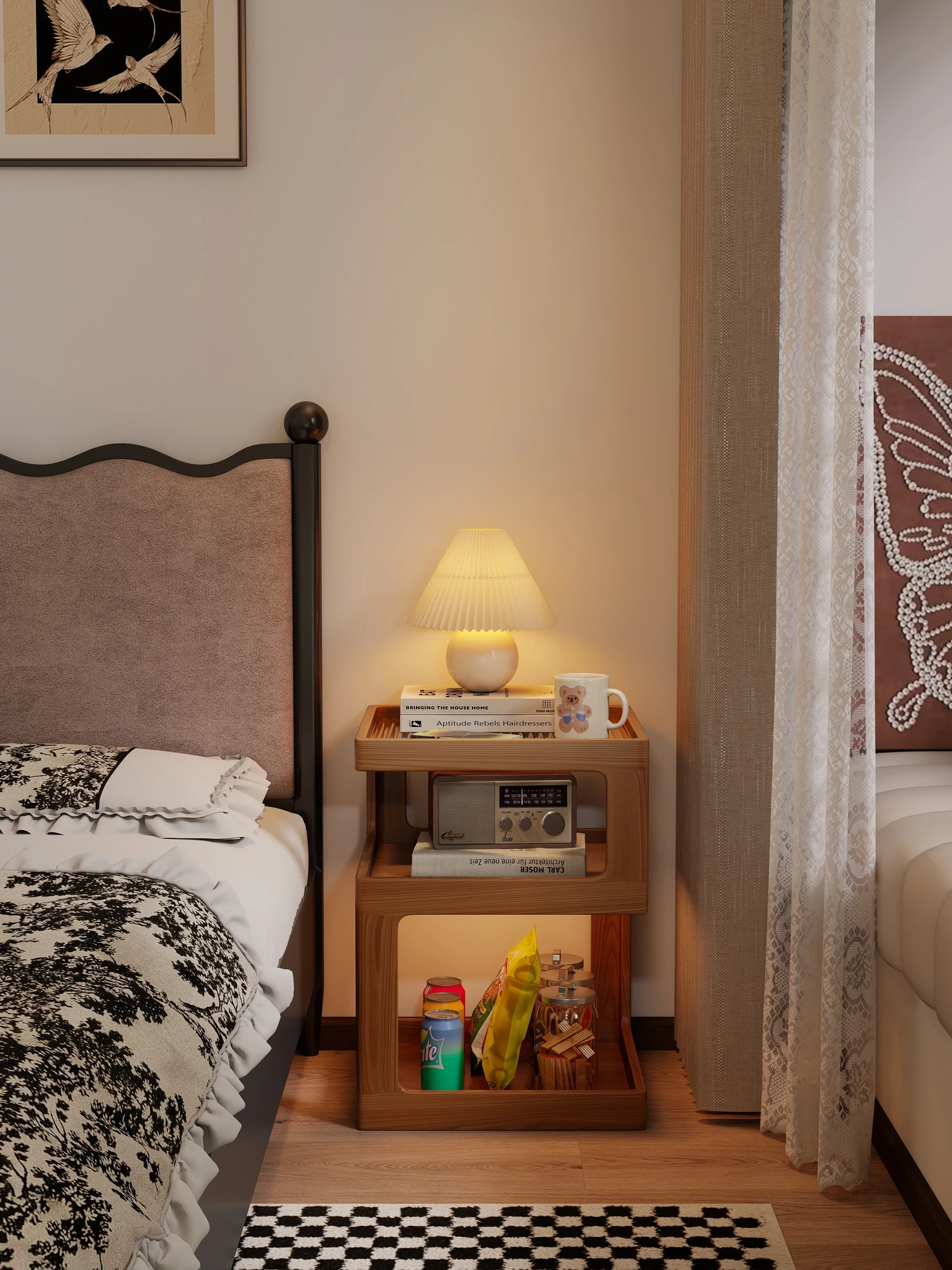 古風なデザインの全実木製ベッドサイド収納キャビネット - 狭いスペースにもぴったりなクリエイティブなベッドサイドテーブルの代用品!おしゃれで機能的な収納を実現します。