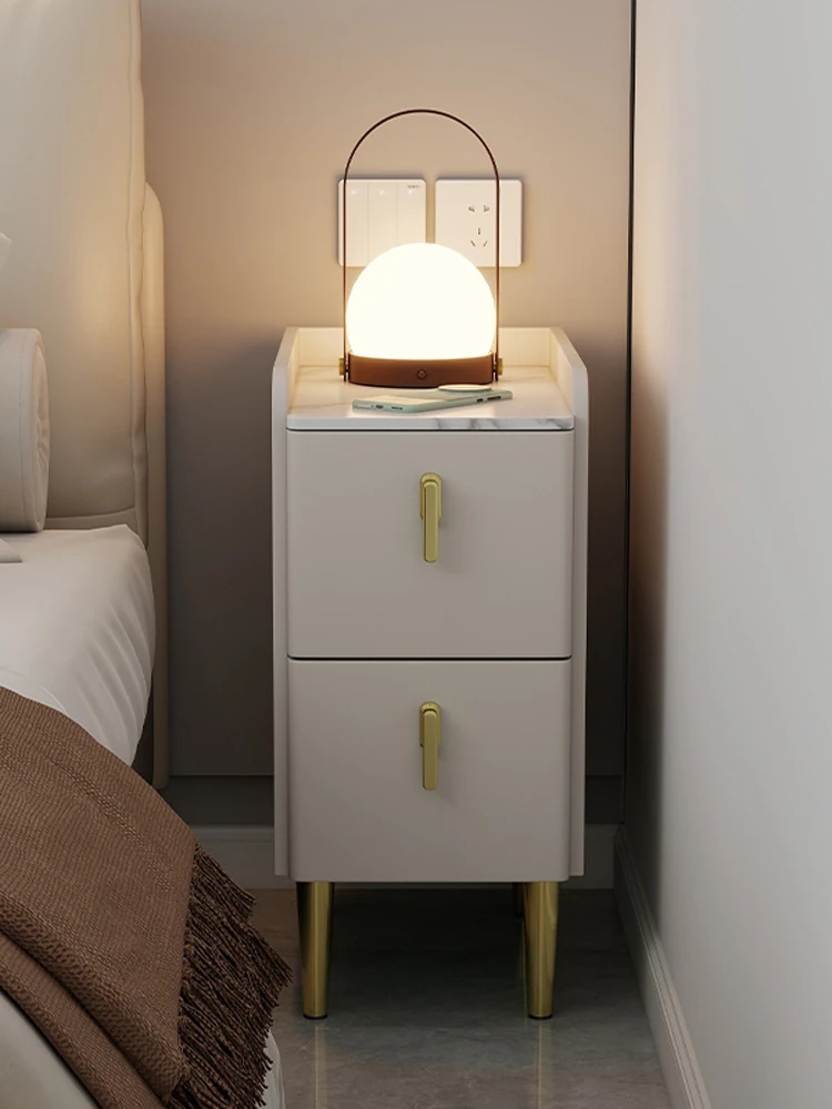 超スリムなベッドサイドキャビネット - 高級感あふれる25cm幅の無垢材ミニサイドボード!現代的でシンプルなデザイン、狭いスペースにもぴったりなスタイリッシュな収納!