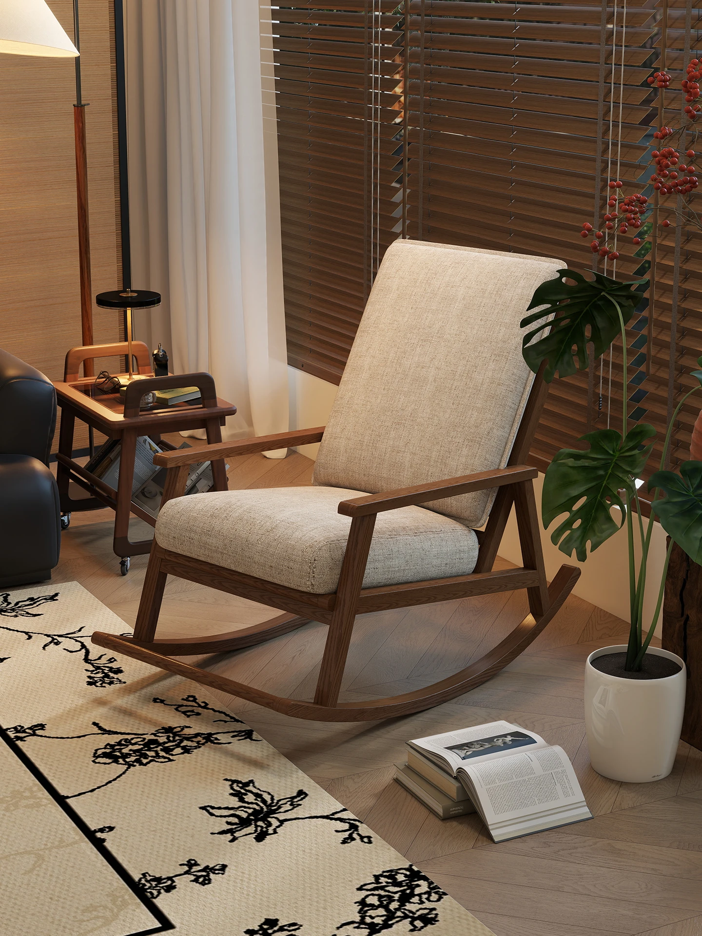 高級感溢れる無垢材の一人用ロッキングチェア!リラックスできるソファ兼用、昼寝も可能な設計。家庭用やバルコニーに最適のレトロスタイル、シニアの方にもぴったりな快適なひとときをお届けします。