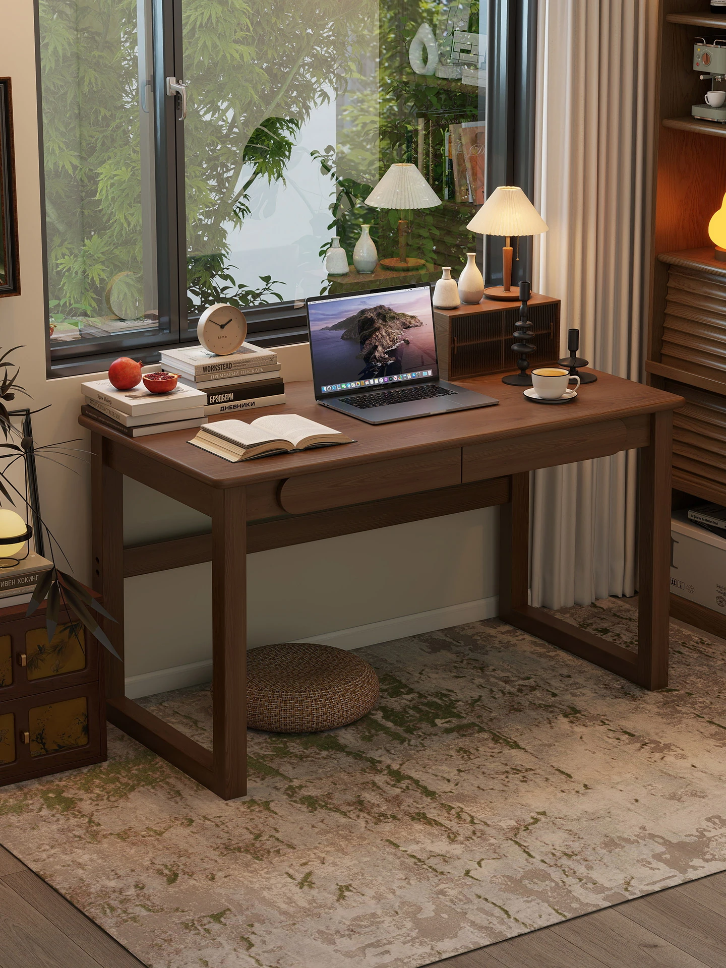フランス風の無垢材デスク - 引き出し付きのレトロな学習デスク・オフィスデスク。古典的な香雲紗デザインで、家庭用書斎やコンピューターデスクに最適!美しさと機能性を兼ね備えた一品です。