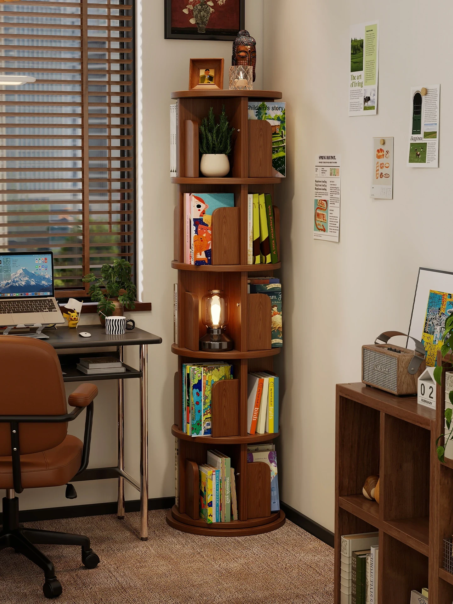 回転式書架 - スペースを有効活用!学生に最適な天然木製の書架。リビングやコーナーにぴったりのスリムなデザインで、中古品の収納もバッチリ!あなたの空間をおしゃれに整理整頓!