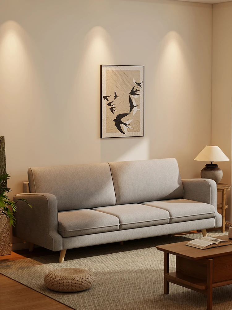 小型布製ソファー - コットンリネン素材、シンプルでモダンなデザイン。リビングやアパート、服屋に最適!2人掛け・3人掛け対応のコンパクトサイズで、スペースを有効活用。快適さとスタイルを両立させる一品!