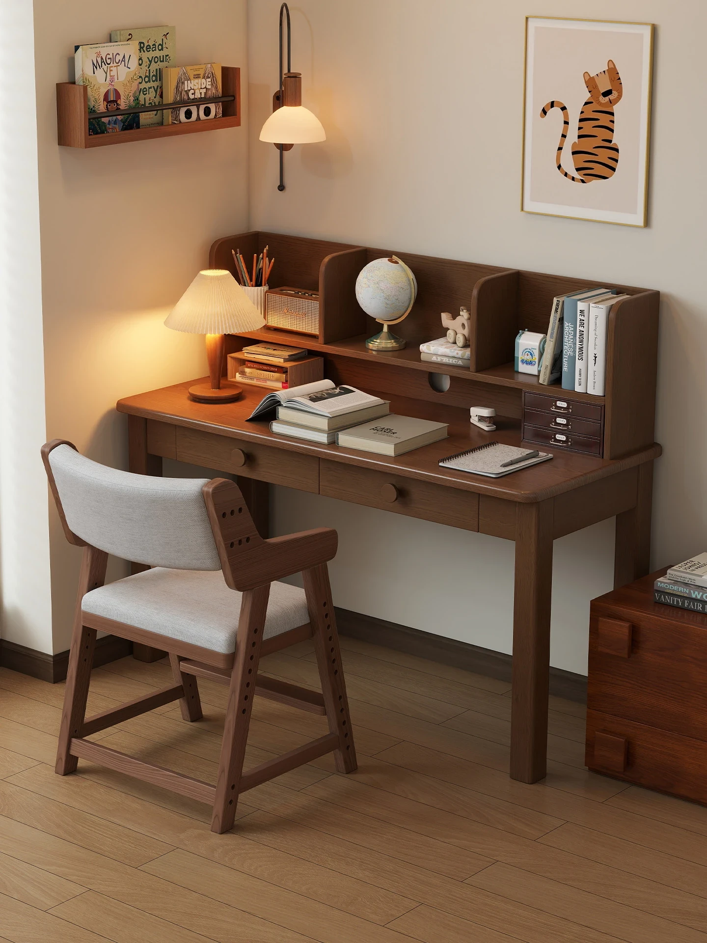 全実木製のコンパクトパソコンデスク&学習机 - 寝室や小さなスペースに最適!中高生向けのスタイリッシュで機能的な一体型デザイン。収納力抜群で、学びをサポートします!